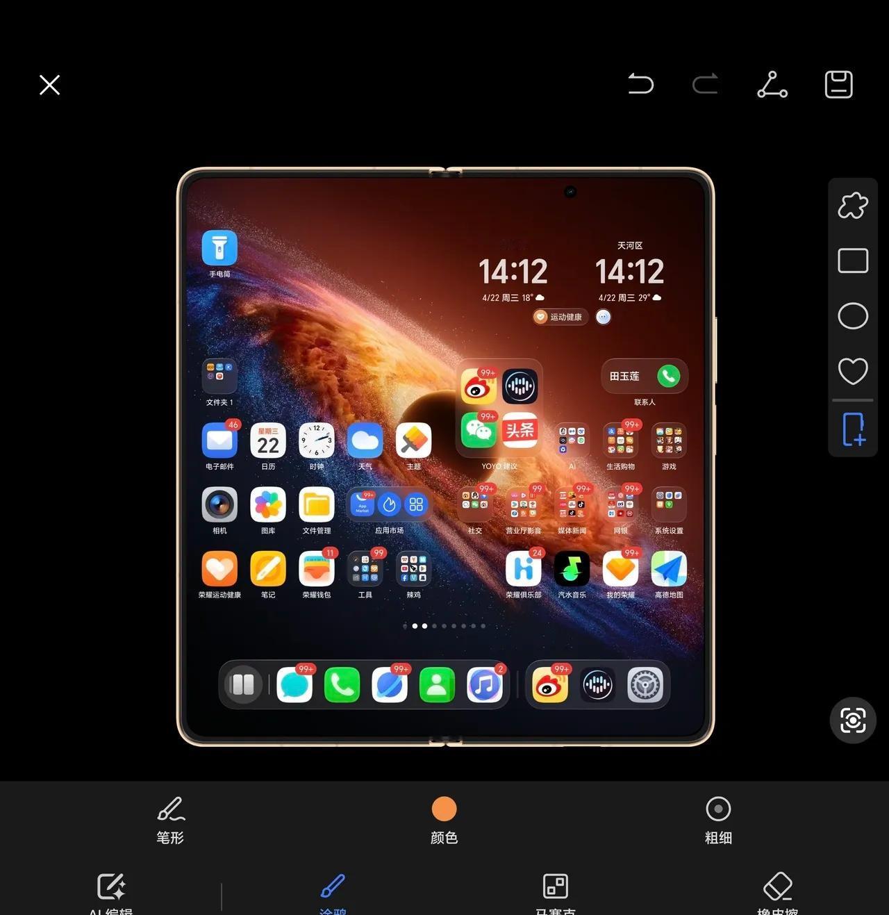 2、带壳截图 自动套上MagicV6专属机壳,自带机型水印,发社交平台一眼就能认出来,辨识度拉满。缺点就是壳子占画面面积有点大,属于晒机专属,平时用不太上。