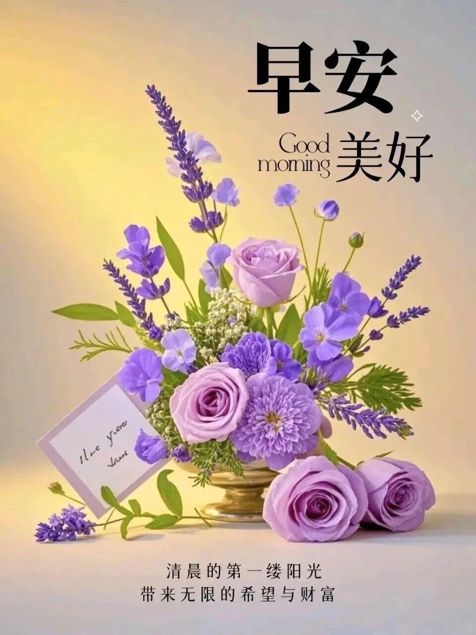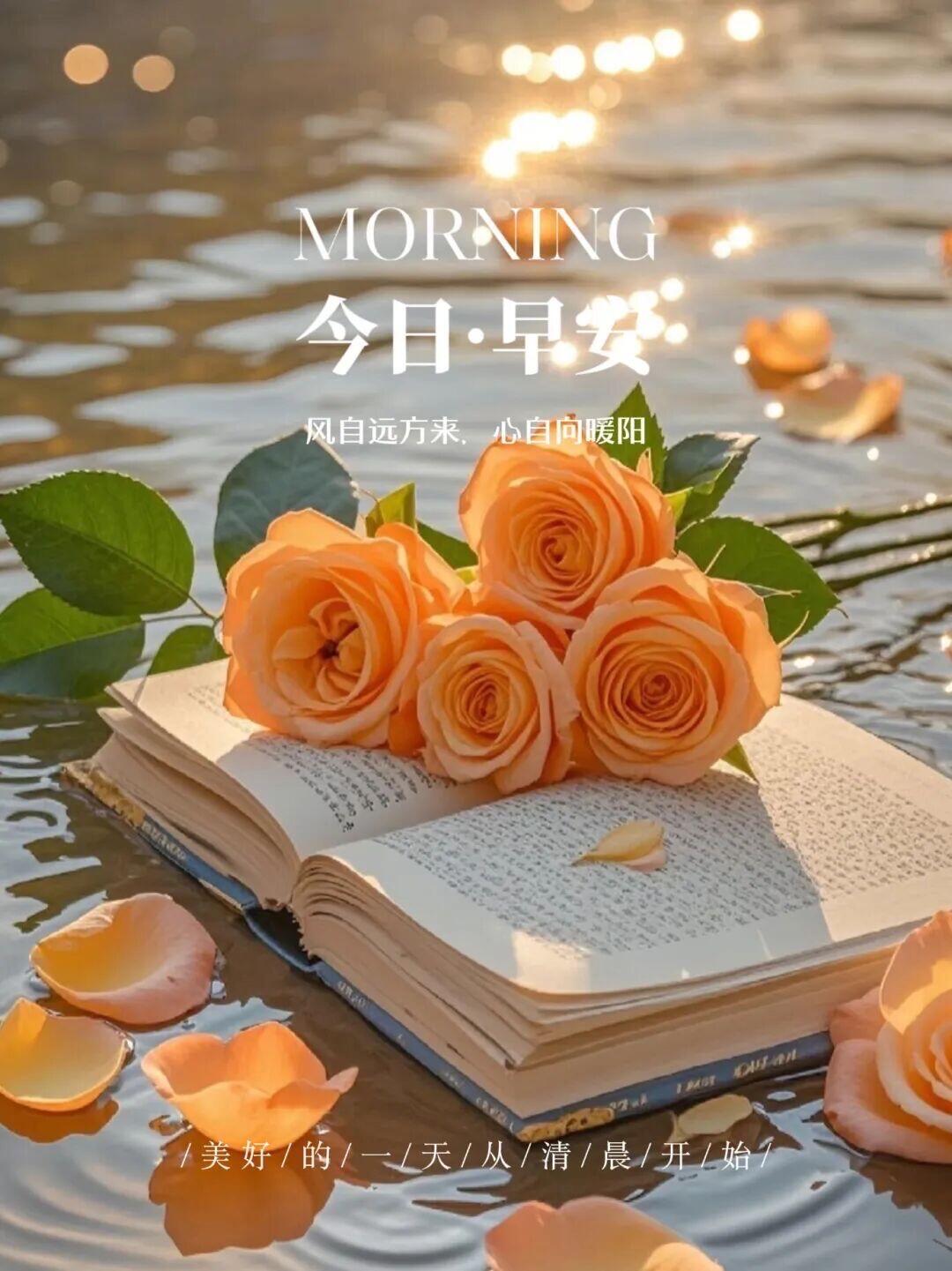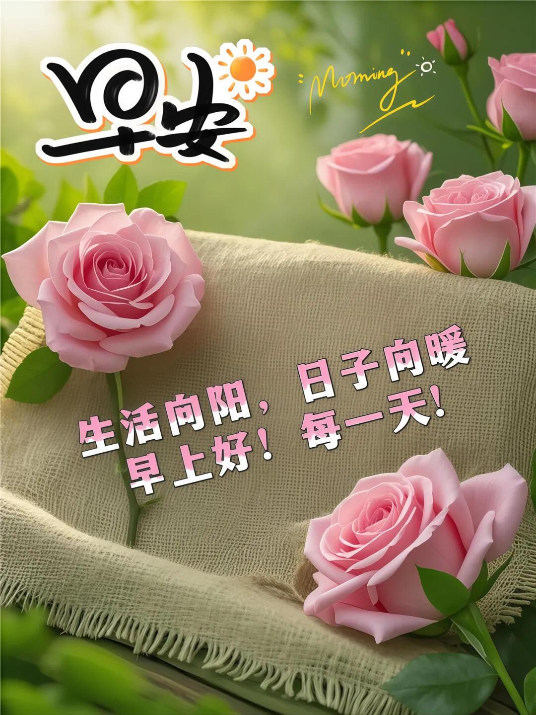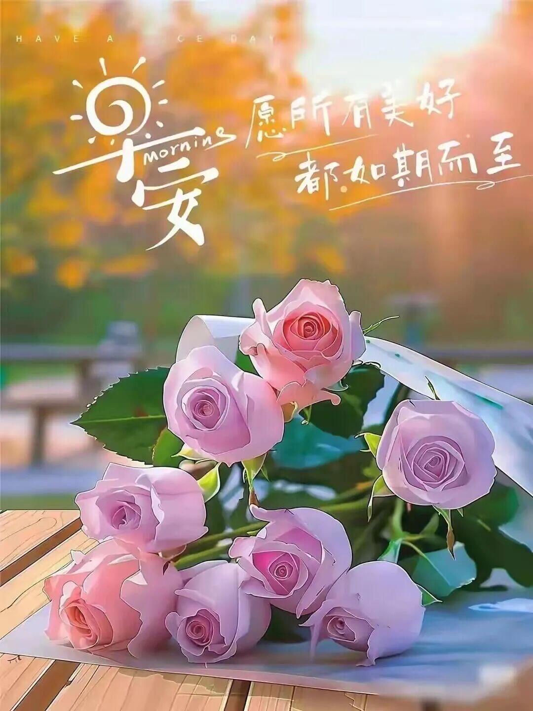 3.☘️☀️晨起清风拂面,心生温柔安然;简单祝福相送,暖意藏在心间。守住健康,放宽心境,愿全天自在欢喜,万事称心如意!💐✨🤗