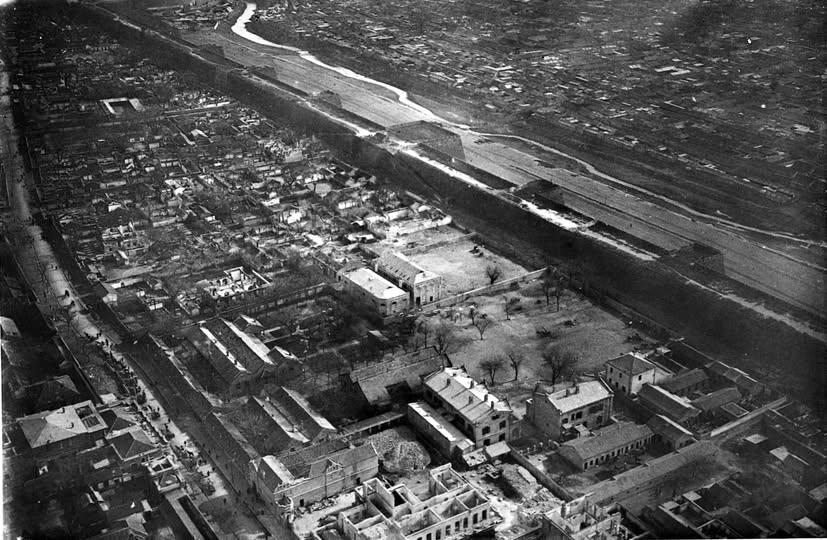 1900-1901年庚子事变期间,法军利用热气球拍摄的北京东交民巷航拍照片,是清