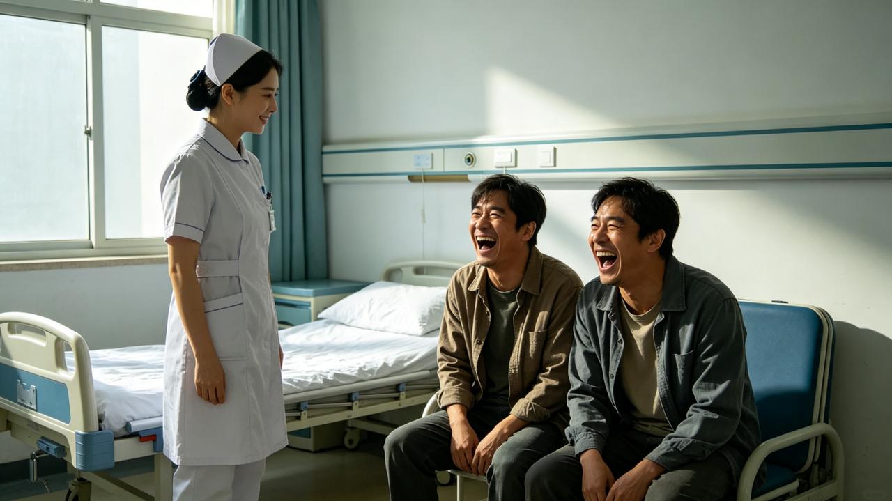 病房里静了几秒,然后护士听见两个男人笑得很响。