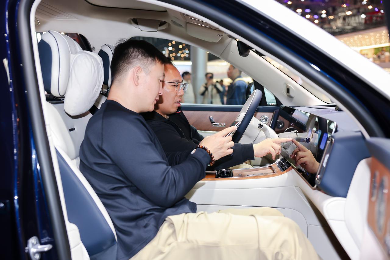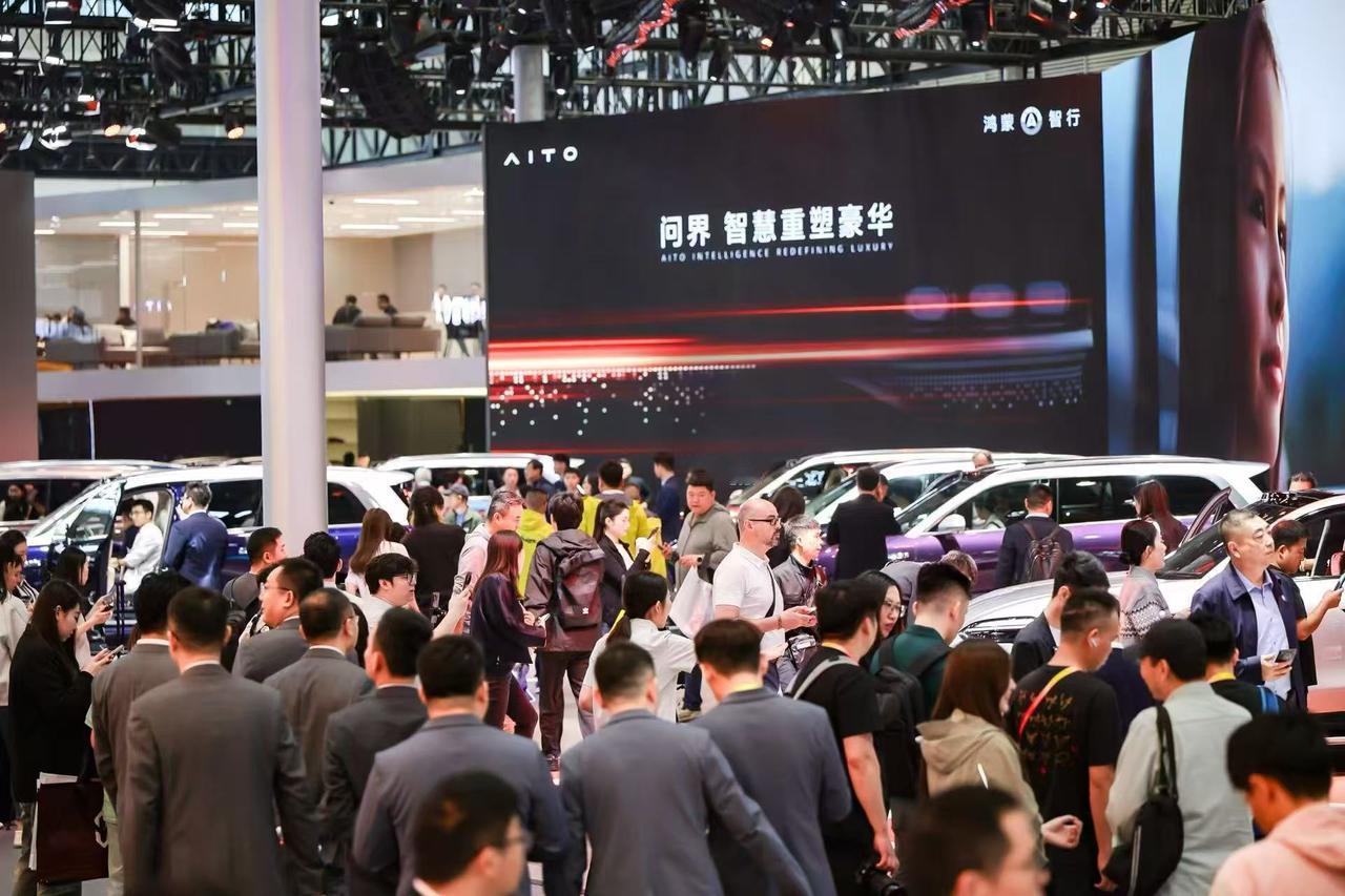 展台两侧还有技术体验区,能亲手摸鸿蒙座舱、试乾昆智驾,连底盘和激光雷达都有解剖台,看得特别过瘾。开幕当天人挤人,人气完全压过旁边的展台。