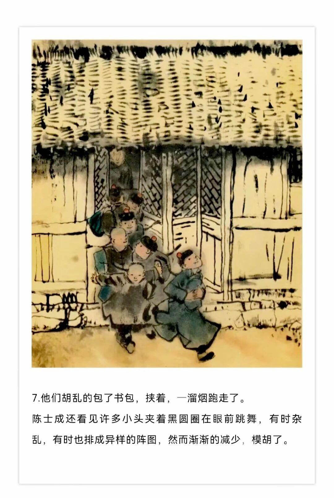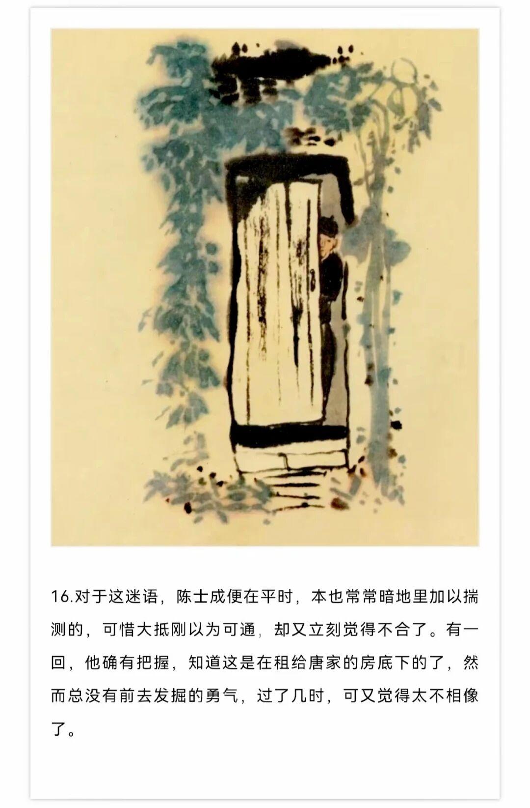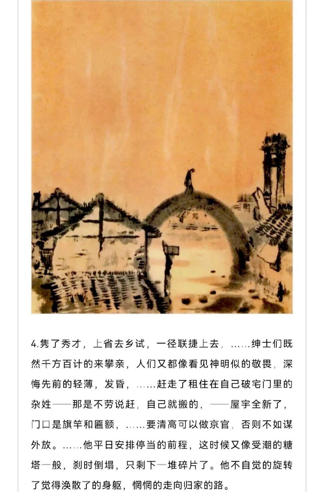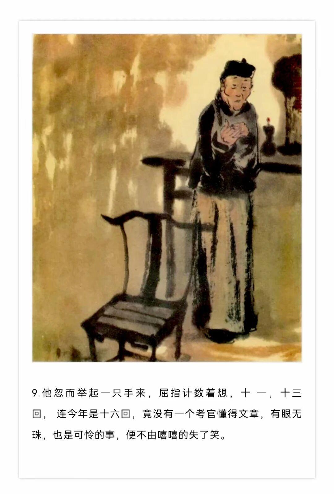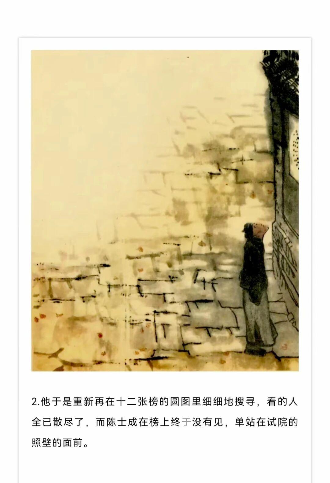 1980年贺友直用水墨写意风格创作了连环画《白光》,内容改编自鲁迅同名小说,描绘了老童生陈士成科举落第后精神崩溃的悲剧,贺友直用独特个构图和墨色浓淡变化营造出了阴郁压抑的氛围。