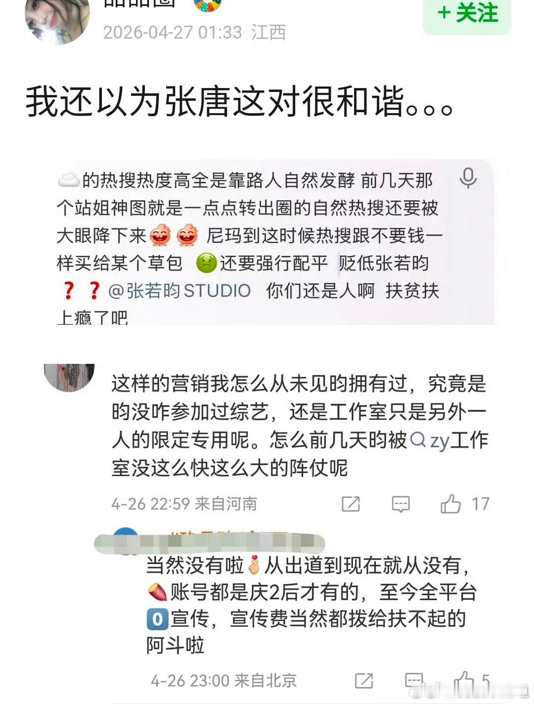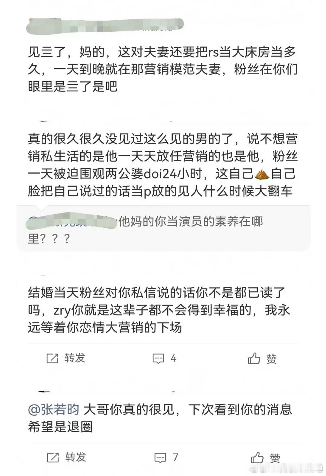 张若昀粉丝确定是唯粉吗?唯粉难道会希望偶像婚姻生活不幸福?不至于吧?其他粉丝,我