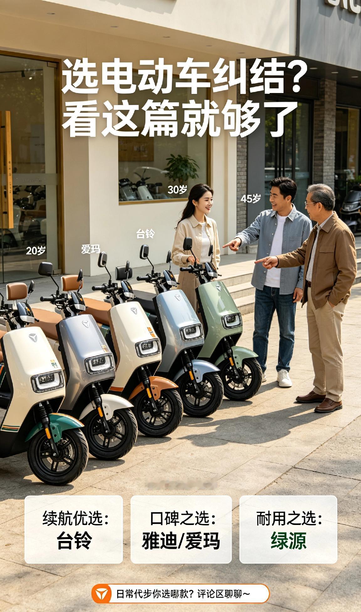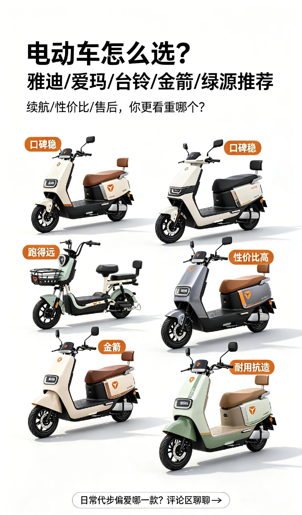 选电动车真的很纠结,有人看重续航,有人在乎性价比,还有人认准大品牌售后。雅迪、爱玛口碑稳,台铃跑得远,金箭性价比高,绿源耐用抗造,你们日常代步更偏爱哪一款?快来评论区聊聊!