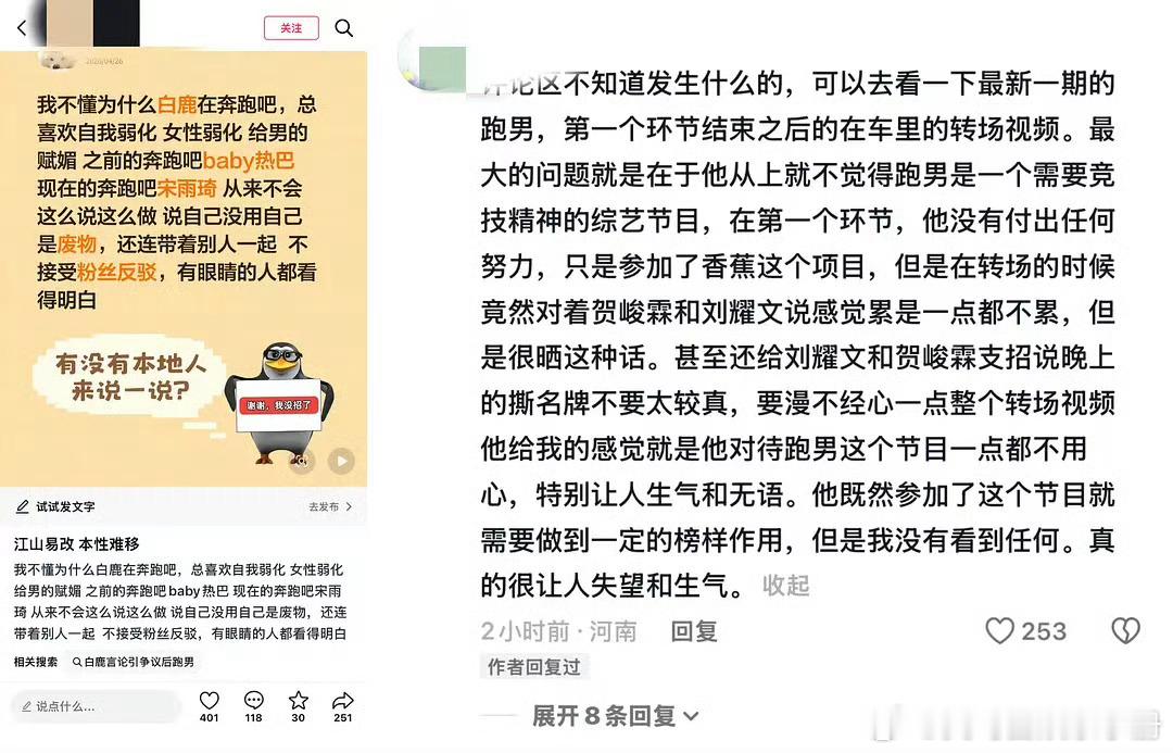 白鹿新一季跑男中调侃郑恺撕名牌前热身、说自己不累只是有点晒,给刘耀文贺峻霖支招等言论被初代跑男粉吐槽对节目漫不经心,不尊重成员等…你怎么看?
