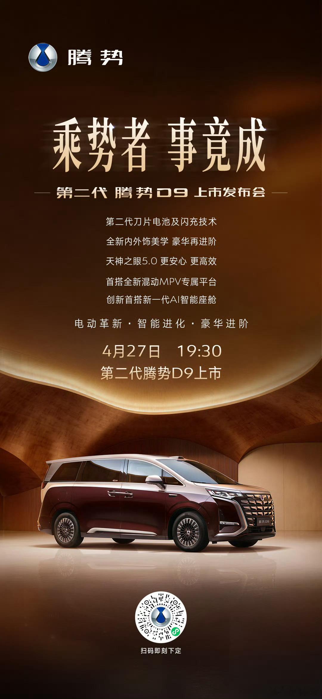 迪子高端三连击冲击51黄金周新高峰4月27日第二代腾势D9搭载闪充今晚上市4月2