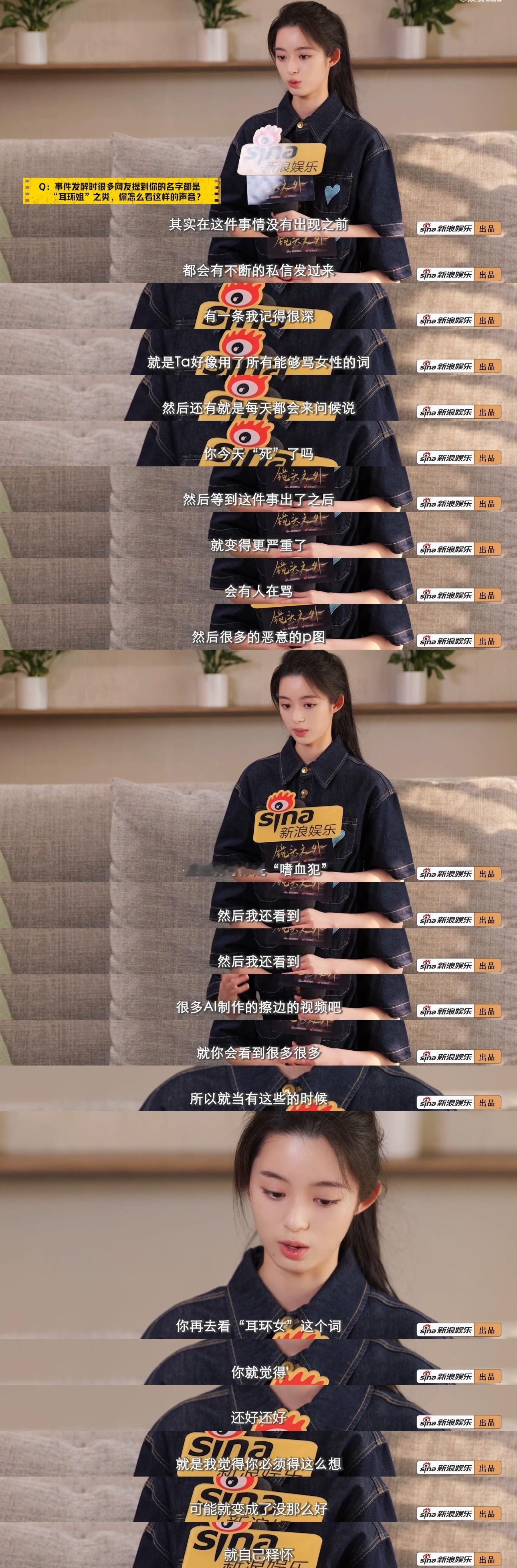 被问到事件发生后大家对她“耳环姐”的称呼,黄杨钿甜说自己的私信一直有被网友辱骂,甚至有“嗜血女”、恶意擦边视频这类的私信,当看到这些之后再看“耳环姐”,就觉得还好,自己只能这么想,让自己去释怀。