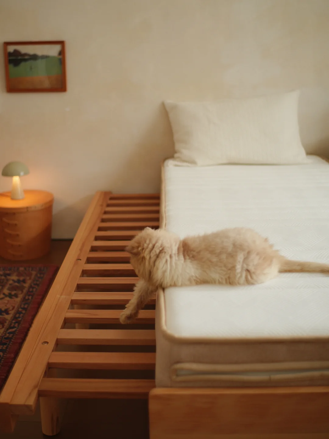 布置房间也来凑热闹 看来也是很喜欢它的新床