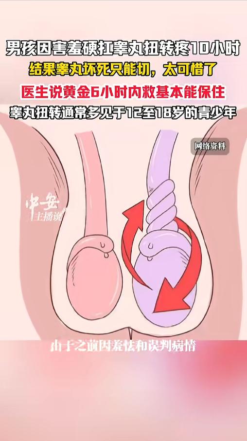 睾丸扭转是泌尿外科最紧急的病症之一,多发于12-18岁少年,而且一旦发生,黄金救治时间只有6小时,一旦超过,坏死几率直线上升。