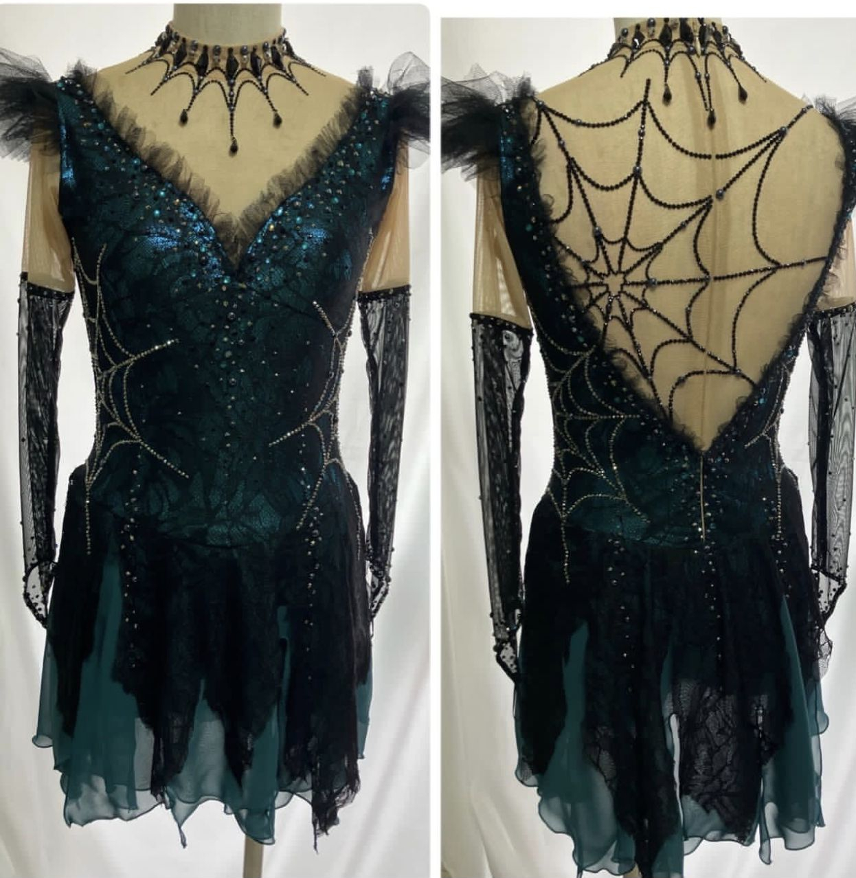 李方甯收集花样costume 2026-27赛季自由滑《蜘蛛女之吻》服装来自伊藤聪美🇯🇵 材质的选取上还是那么神,幽绿光泽与白色蛛网和昆虫相应