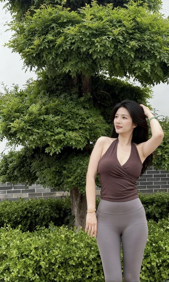 我发现这深咖色的挂脖上衣配灰色瑜伽裤,真的巨显比例。高腰设计一拉,腿看着直接拉长一截,走路带风贼精神。而且面料软乎乎的,一整天都没勒痕,比穿裙子还自在!