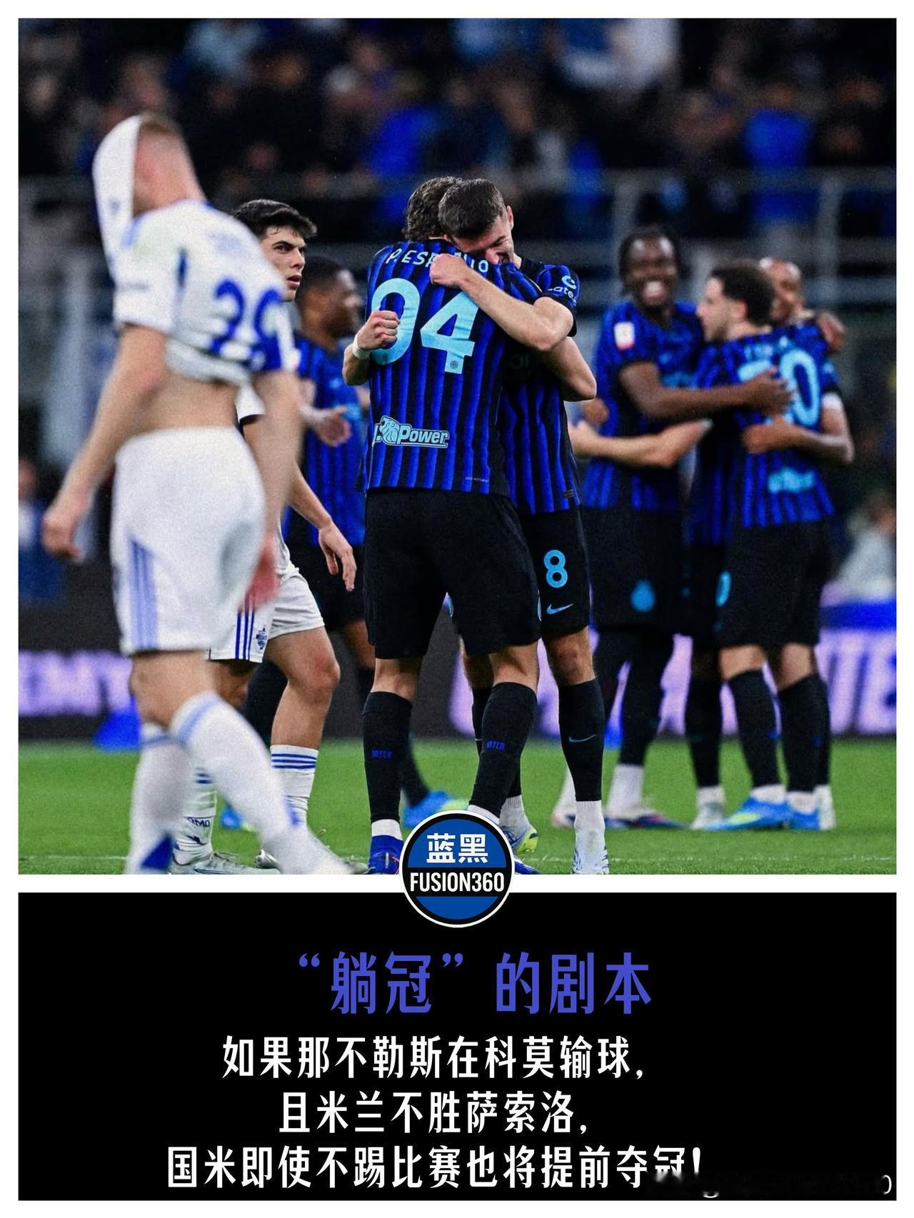 第34轮打完,国米在积分榜上已经甩开第二名那不勒斯10分,领先第三名米兰12分。下一轮的赛程安排很微妙:孔蒂和阿莱格里的球队都要先开踢。如果那不勒斯周六输给科莫(当地时间,下同),而且米兰周日没赢萨索洛,国米就能在对阵帕尔马的比赛开始前,直接锁定意甲冠军。