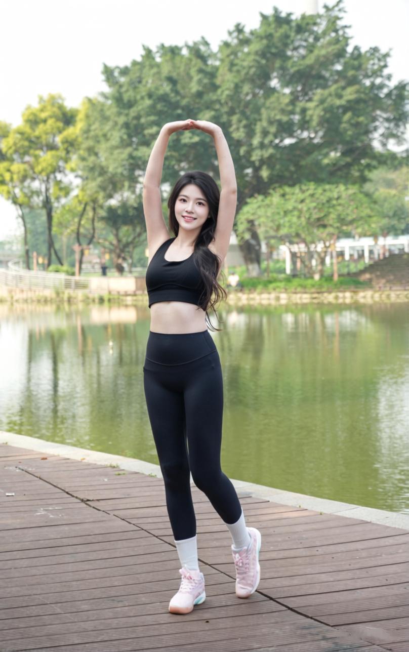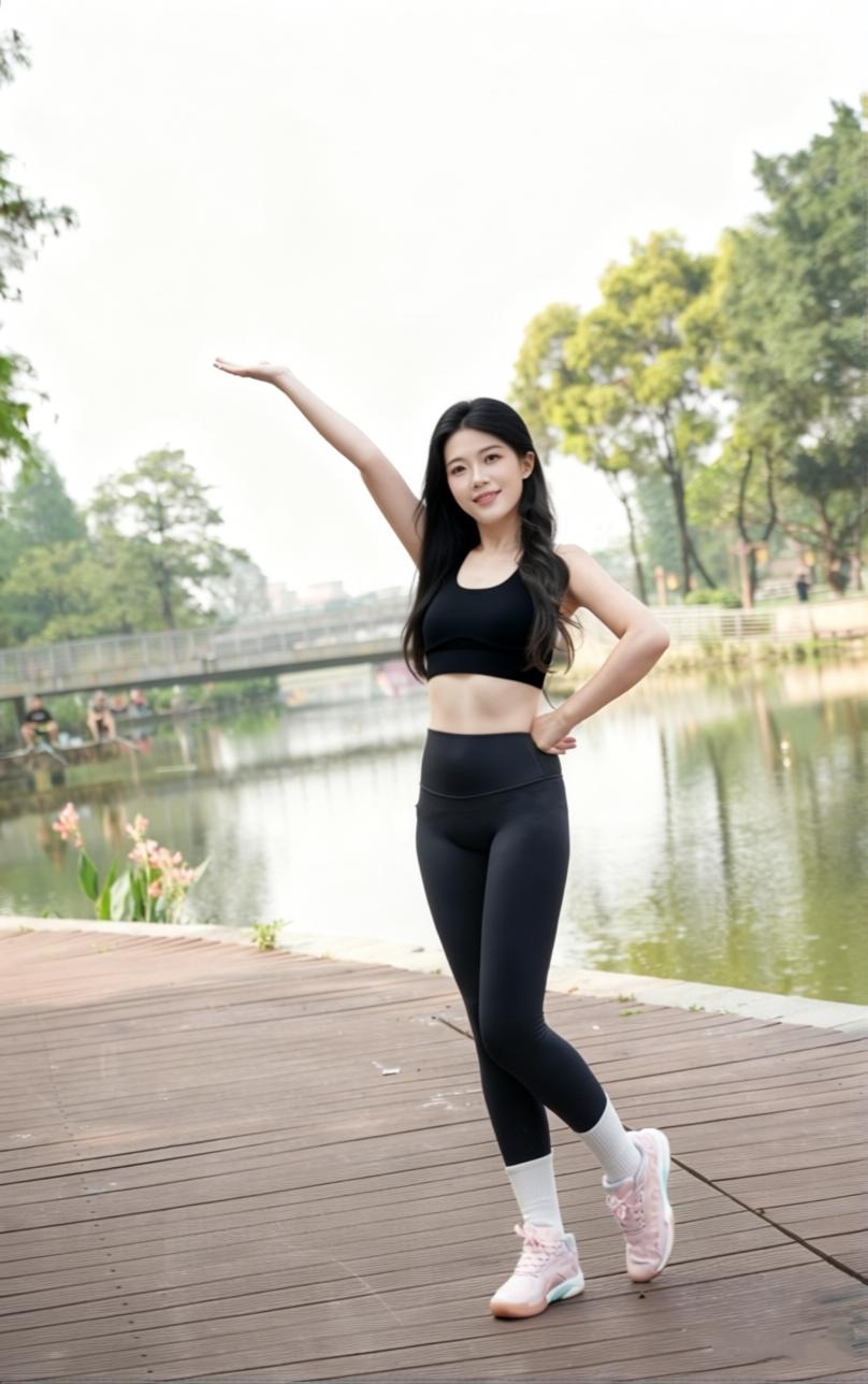 今天早起又来公园跑步啦! 换上我超爱的这套运动服,跑起来都带风~ 运动不是为了瘦