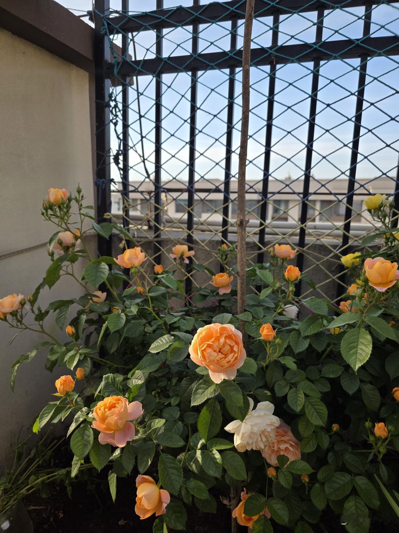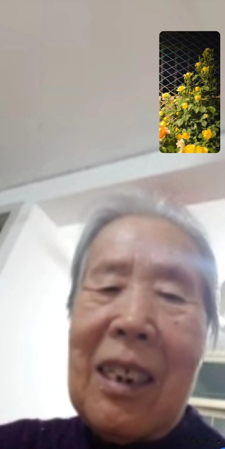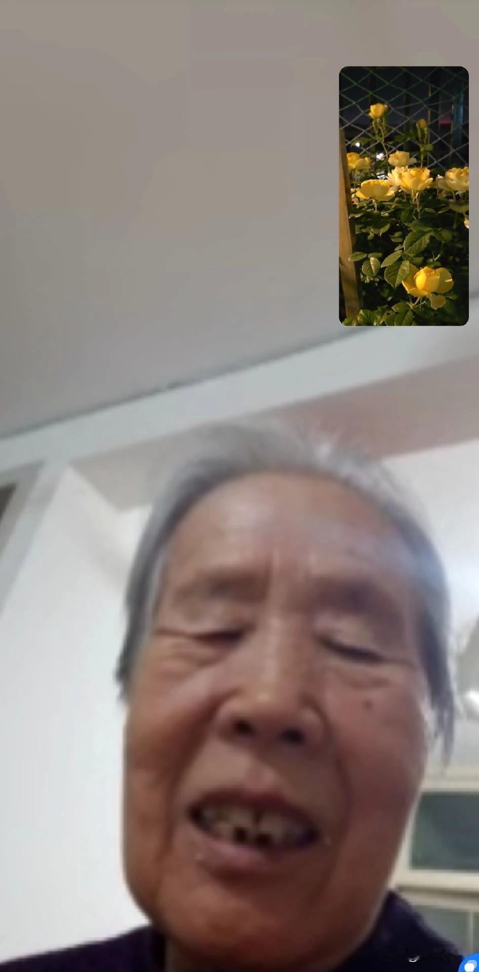 今天中午到家后,我把露台上的月季花发给老娘看,她喜欢得不得了。晚上,我正在吃饭,她打来视频电话,要看看我的花儿。
