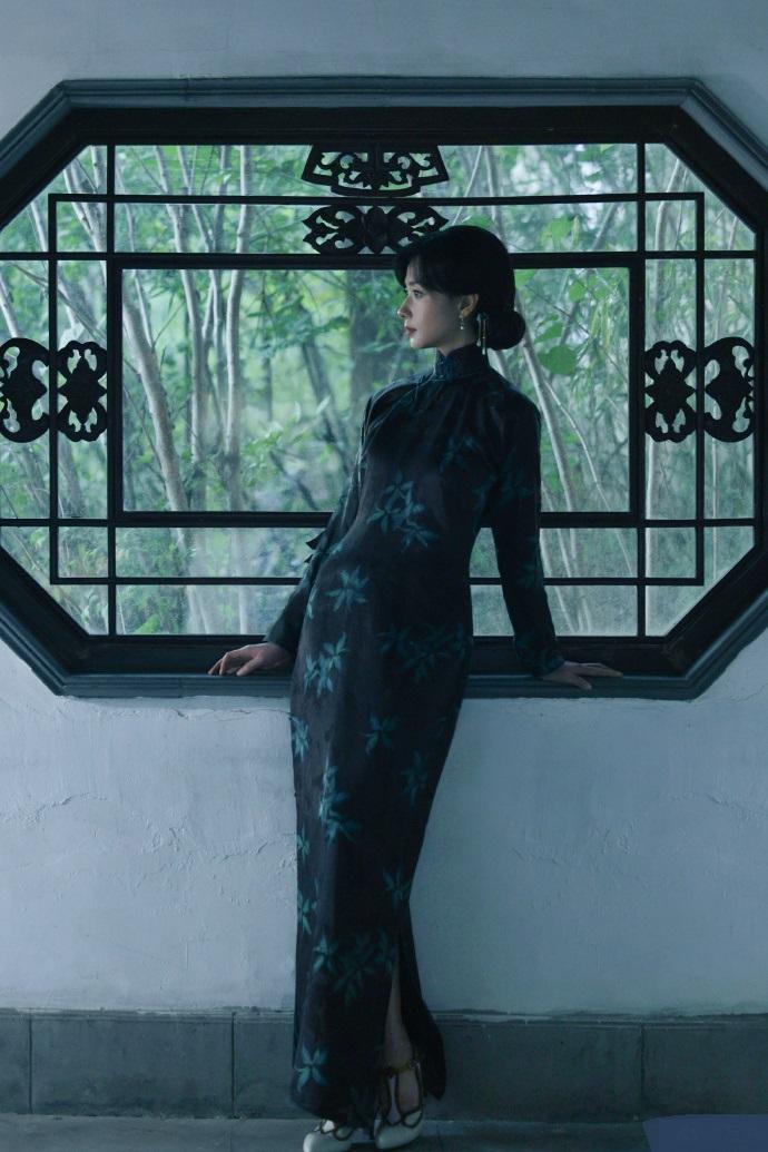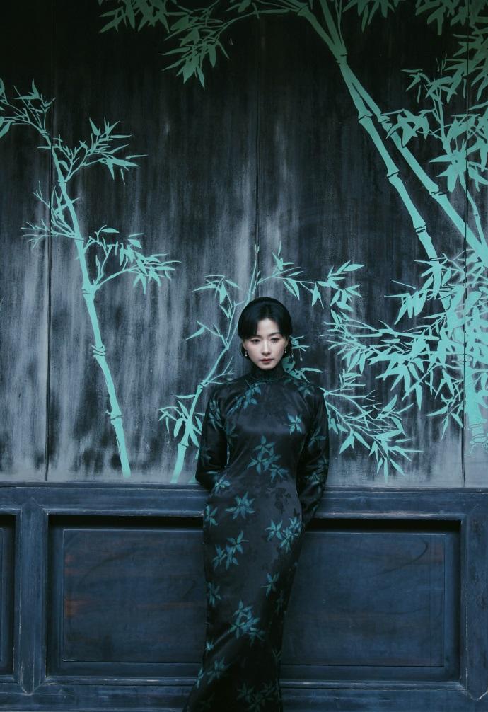 她搭配的衣服上有很清雅的竹叶图案,能够展现出文艺气息,整体效果太完美了。