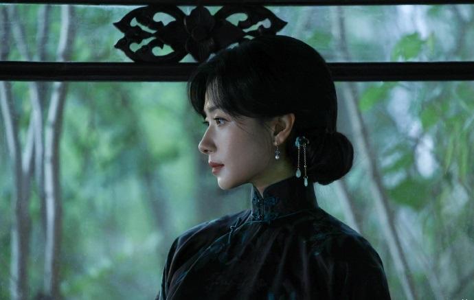 万茜戴着奢华的耳坠,还画着精致的妆容,像个非常漂亮的大家闺秀。