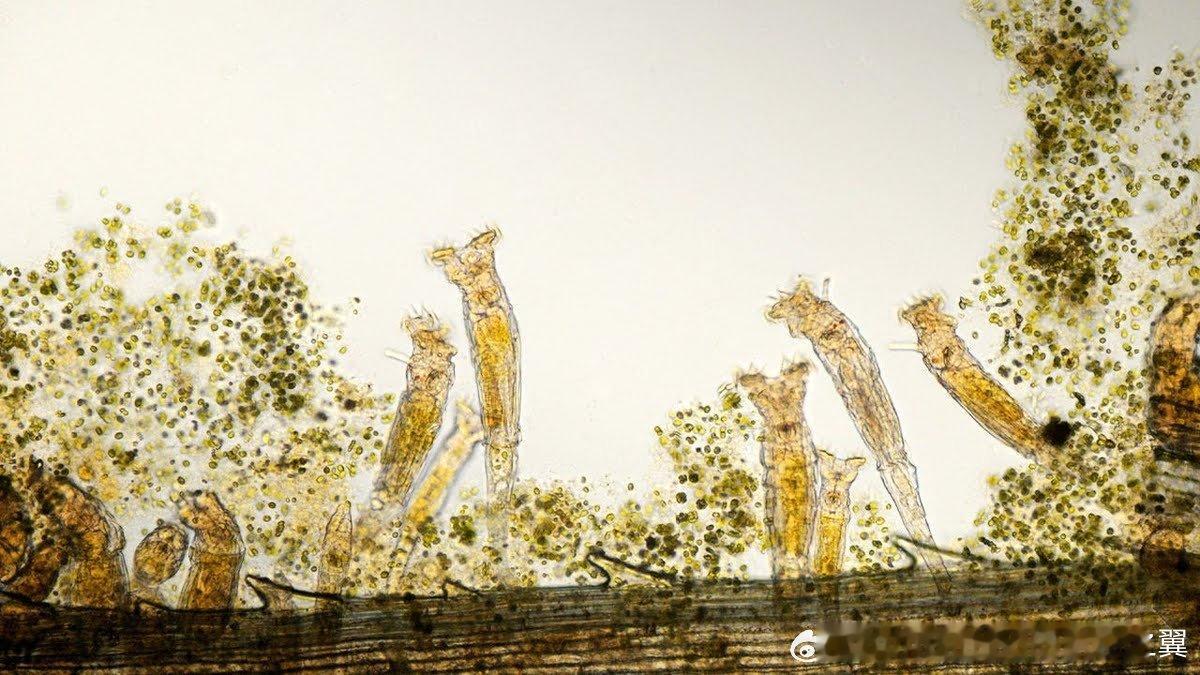 这种生物是蛭形轮虫,一种微小的动物,而不是细菌。它有大脑、下颚和消化系统。它通过克隆进行无雄性繁殖。