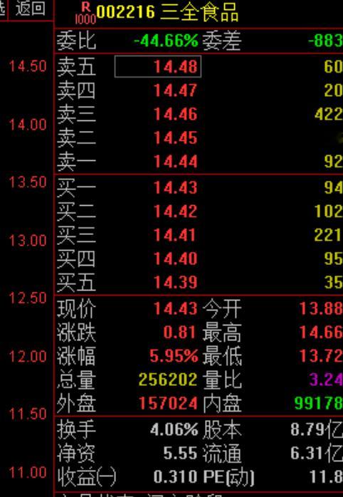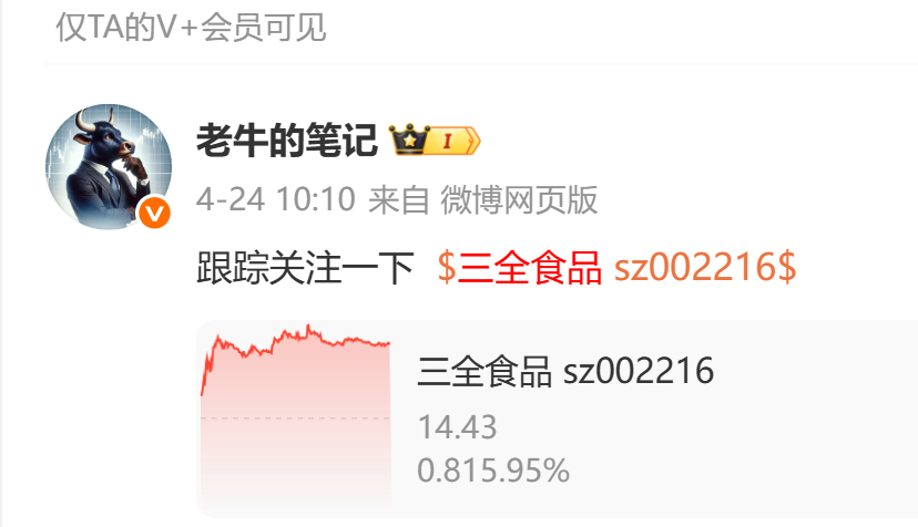4月24日跟踪关注一下 三全食品 今天盘中最高14.66元!