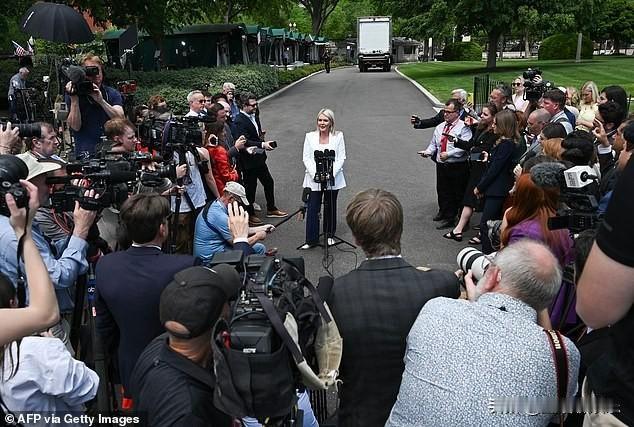 白宫发言人卡洛琳挺着孕肚站在讲台上,笑着说这应该是她一段时间内最后一次简报会了。