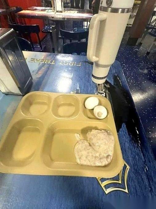 CVN-72“林肯”号核动力航母上的大兵们,压根没打算给长官留半点面子。长官在发布会上说伙食没问题,大兵们一句话不说,直接掏出手机,在网上开启了“暗黑料理盲盒”的实况连载。