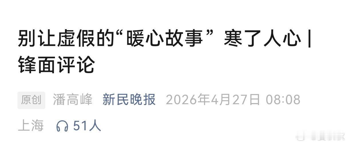 尽管有上述疑问,我还是没有质疑此事。因为很多人,都因为内心的柔软,而对此事寄托了朴素的情感。而今天的《新民晚报》,在经过求证之后,明确定性这个故事,是“虚假的暖心故事”。我想,那就值得多说几句了。任何真实的情感,都不能,也不应,建立在虚假的故事之上,寄托于泛滥的流量之上。它搅拌了老龄化社会的集体焦虑,点缀了底层互助的戏剧性温情,最后以“好人有好报”的爽利结局一锤定音,完成了一次对公众情绪的高效撩拨与消费。有不少人觉得,这是“无伤大雅”的虚构。而我的想法是,老人养老,不能靠一个每天收你50元的“外卖天使”,而要靠制度覆盖,靠救助网络“兜住”需求。老人的安全感,不能要靠一种市场化的、“购买”关怀的方式来获得,而要靠城市在养老问题上持续而认真的公共投入。我一直说,上海是中国养老的最佳城市,是世界养老的顶尖城市。不是因为,它的养老努力,会被编成10万+的爆款,而是因为,上海的养老,靠的是实实在在的投入。而真实的故事里,没有煽情的台词和戏剧性的邂逅,只有沉默的守护与绵长的时光。上海老人每天花50元雇骑手敲门存疑上海晏秋秋