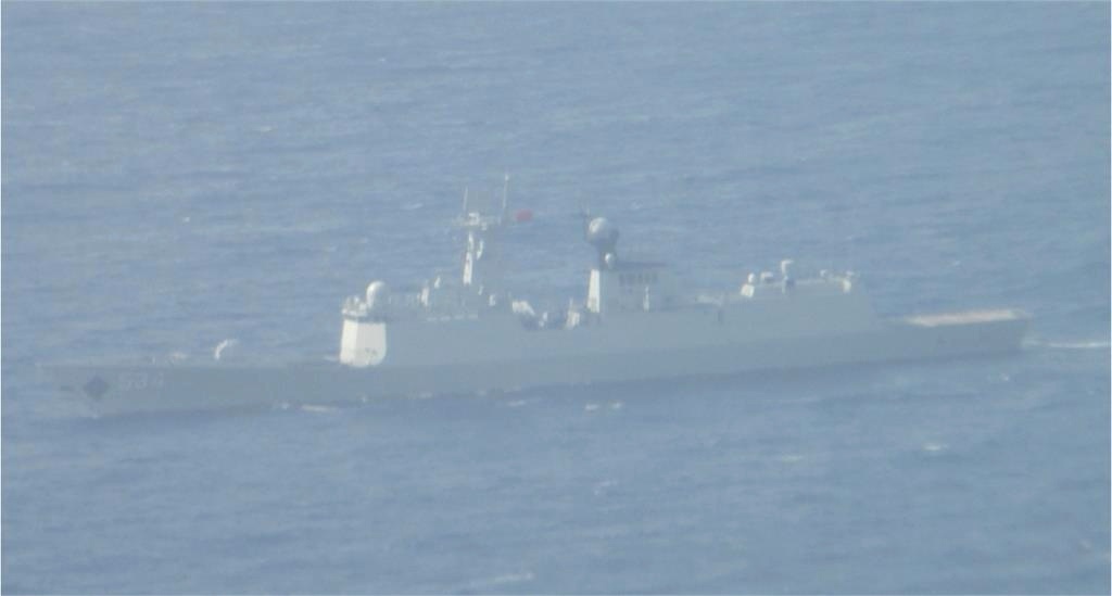 台防务部门昨天(27日)晚上公布影像,称当日解放军一艘052C型导弹驱逐舰和一艘