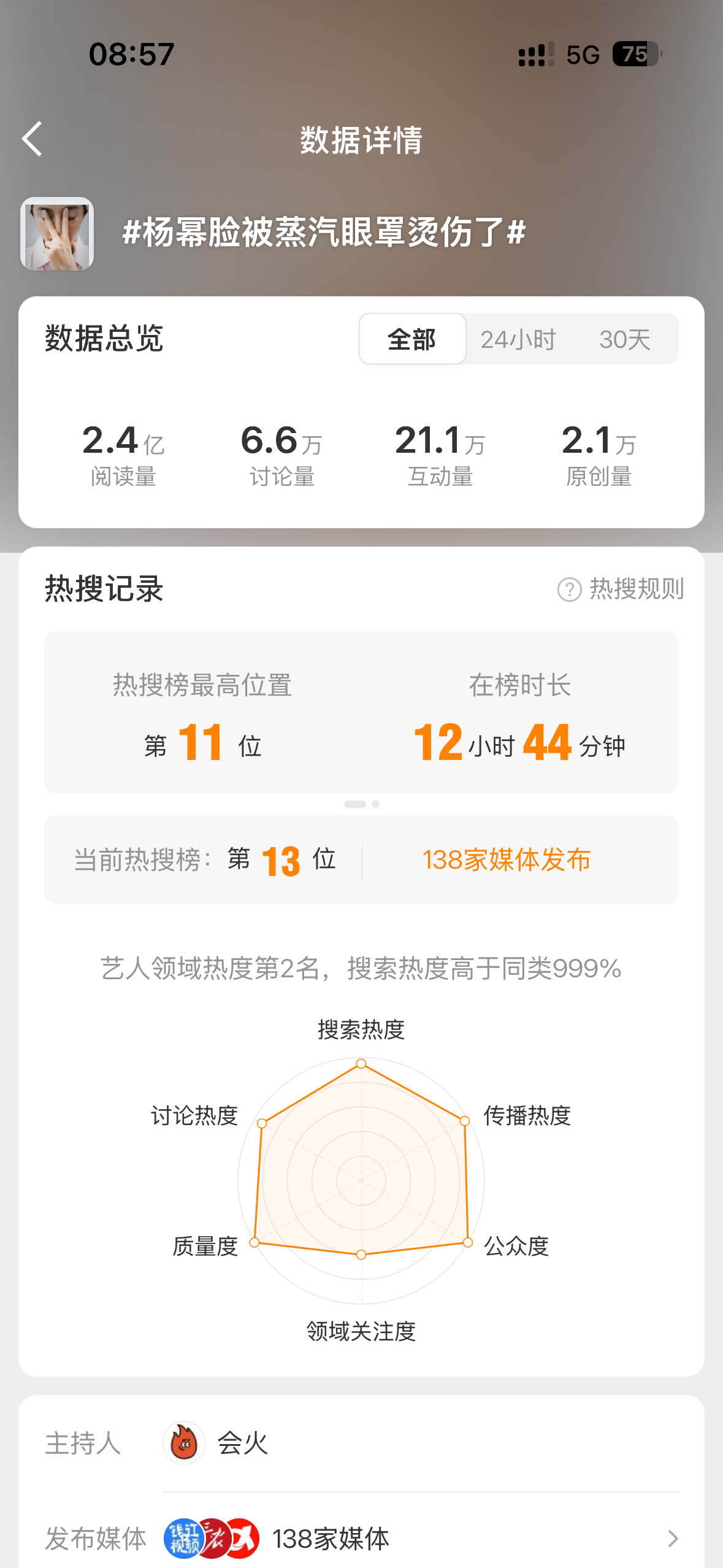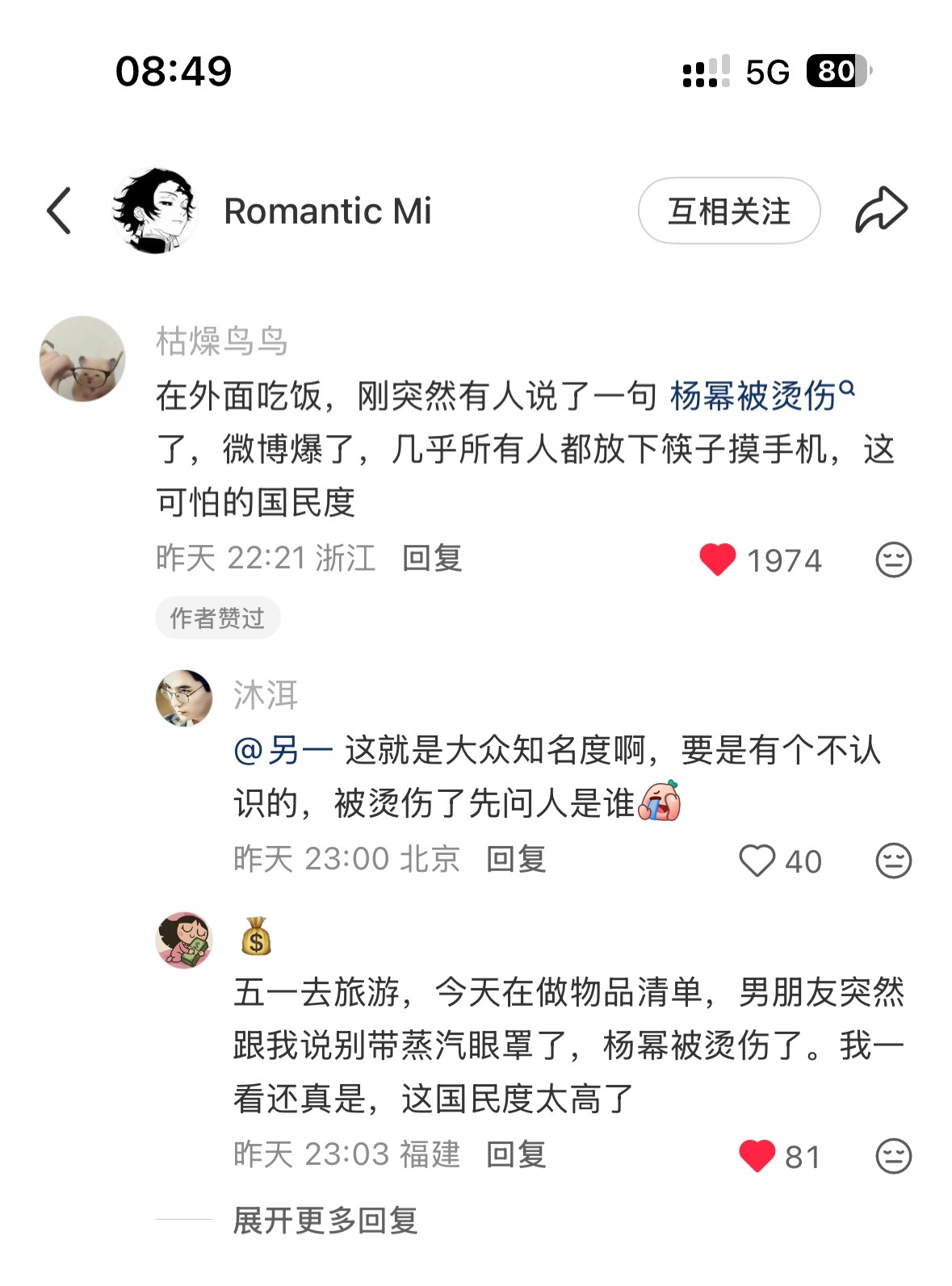 杨幂 早上再一看,好恐怖的热度还在涨搜索,而且带动了全网一批科普,通过幂的关注度让大众得到警醒也是好的,大家以后用蒸汽眼罩真的注意安全