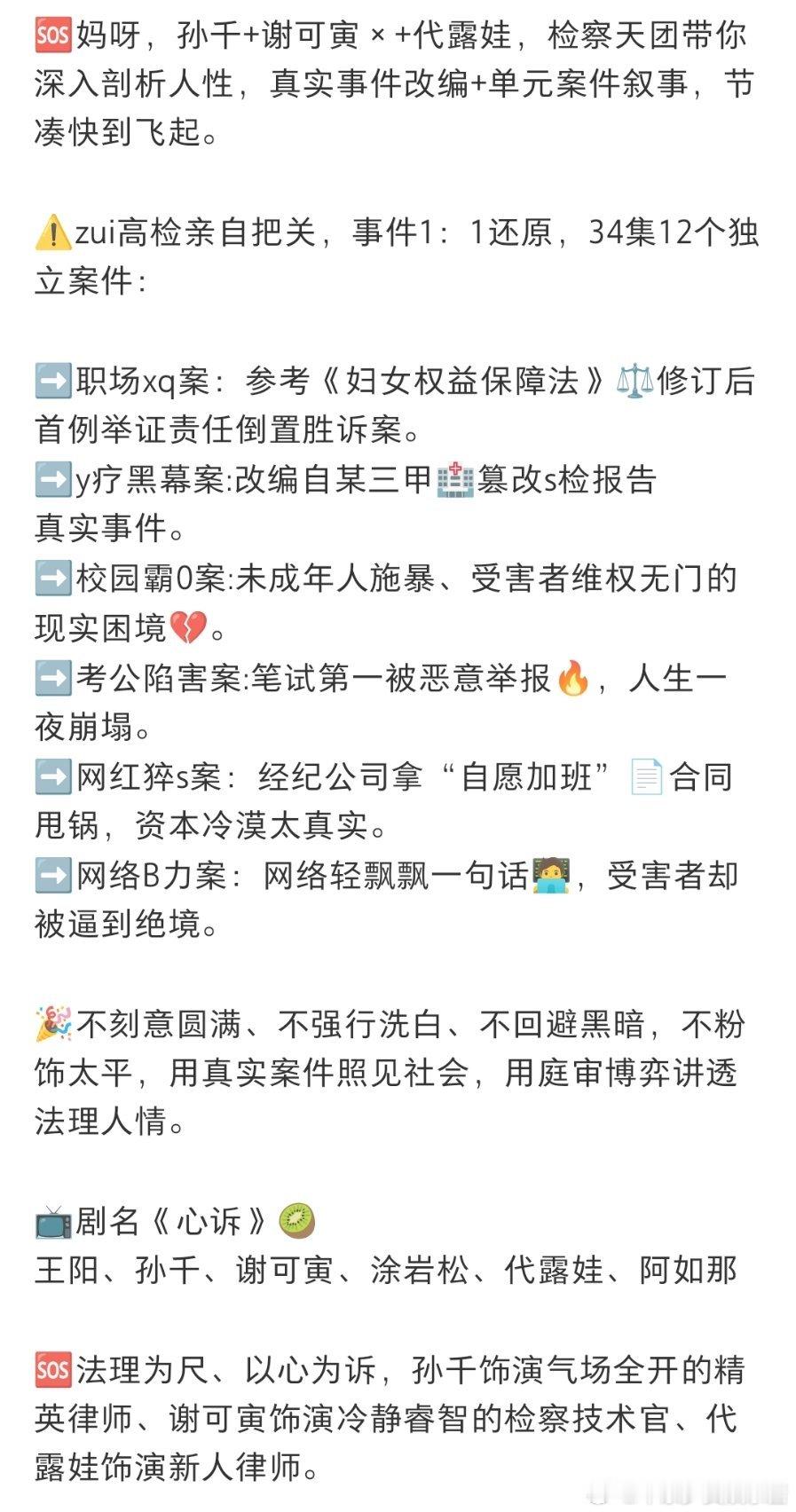 谢可寅➕孙千➕代露娃《心诉》,会成为悬疑剧天花板嘛?