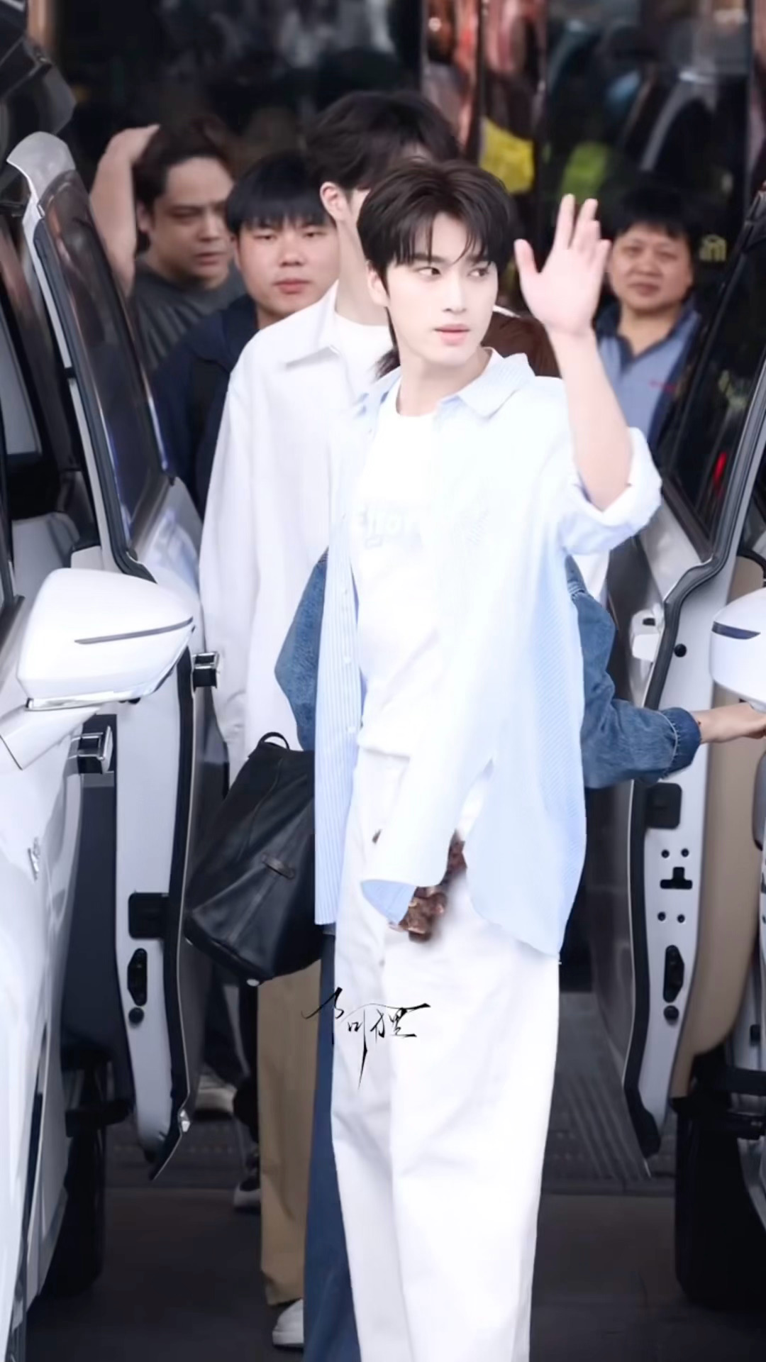 张康乐跑男首秀来了!今天是清新男大风~张康乐跑男首秀路透张康乐浅蓝衬衫路透
