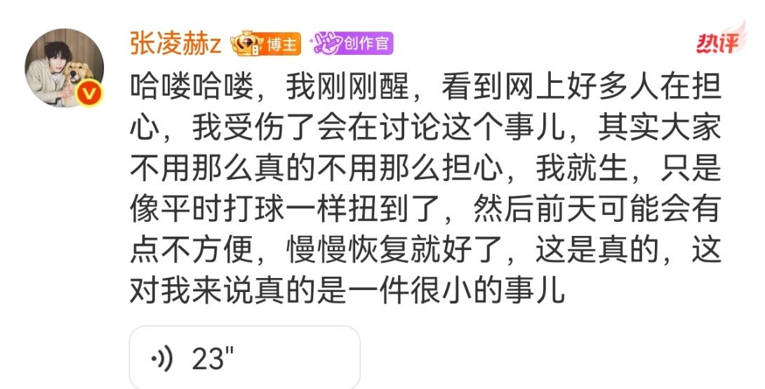 张凌赫回应低血糖摔倒了,在超话连发好几条语音报平安,还说对自己来说真的是一件很小