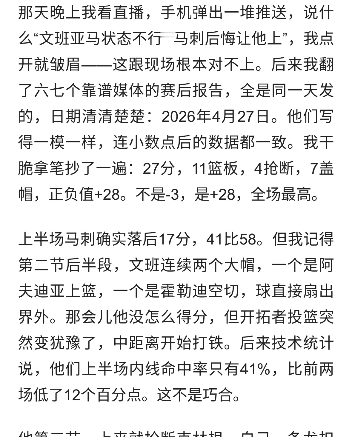 马刺这次可能真要后悔让文班亚马复出了。 首轮G4,马刺客场打开发者,半场只拿