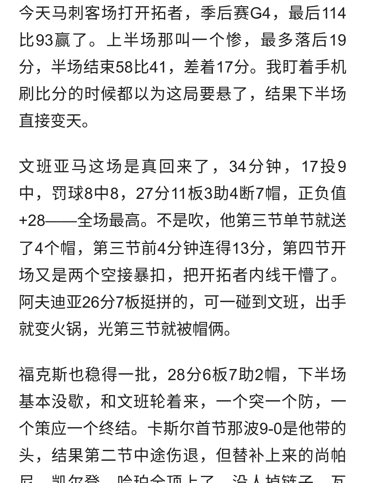19分落后,文班亚马复出暴扣+7帽,马刺翻盘只用半场。