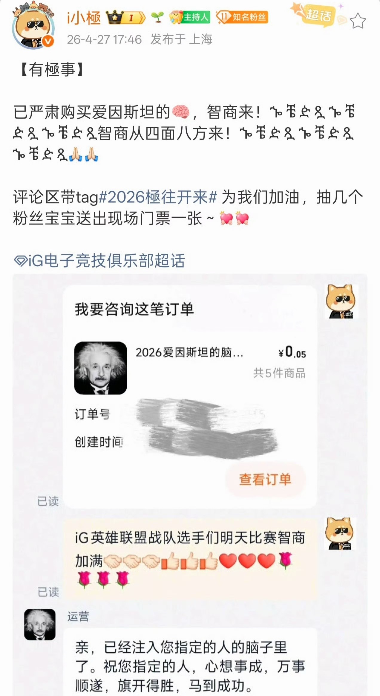 双方吉祥物以几分钱拍下爱因斯坦大脑的荒诞整活,搭配神秘符号趣味造势,将赛场对决的剑拔弩张,巧妙融于网感趣味与幽默玩梗之中。iG率先造梗开局,AL从容接招、层层加码,祭出二十一种取胜姿态。这场极致的智商内卷,看似随性胡闹,实则是两队叙事能力与玩梗功底的巅峰交锋。