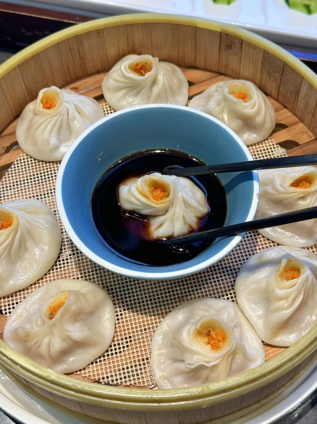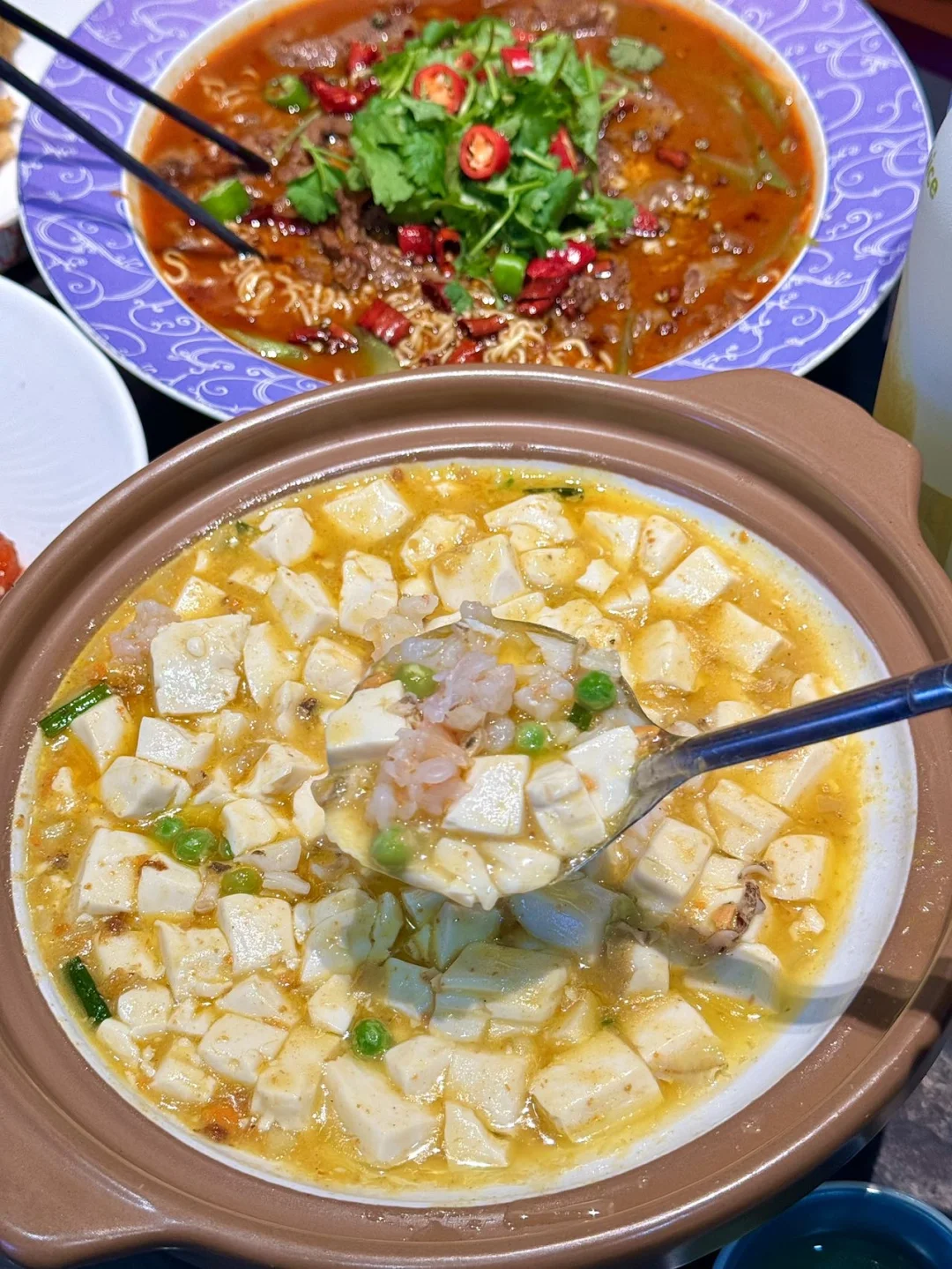 石锅蟹黄海鲜豆腐热气腾腾,汤汁浓郁绵密,豆腐软嫩鲜甜,鲜掉眉毛。