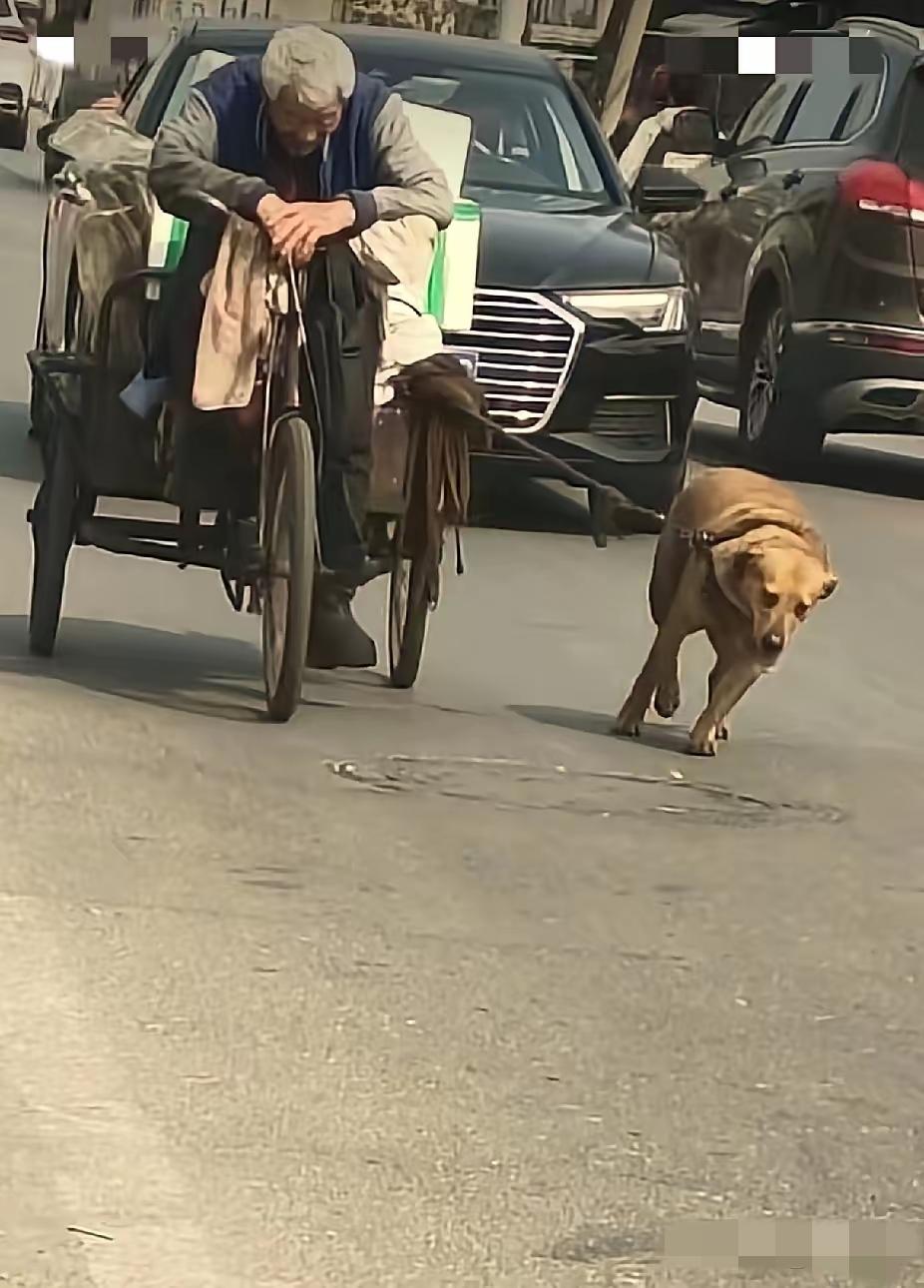 看哭了!安徽的陈先生在去公司的路上看到这只狗狗奋力的拉着拾荒的大爷,从大爷那得知