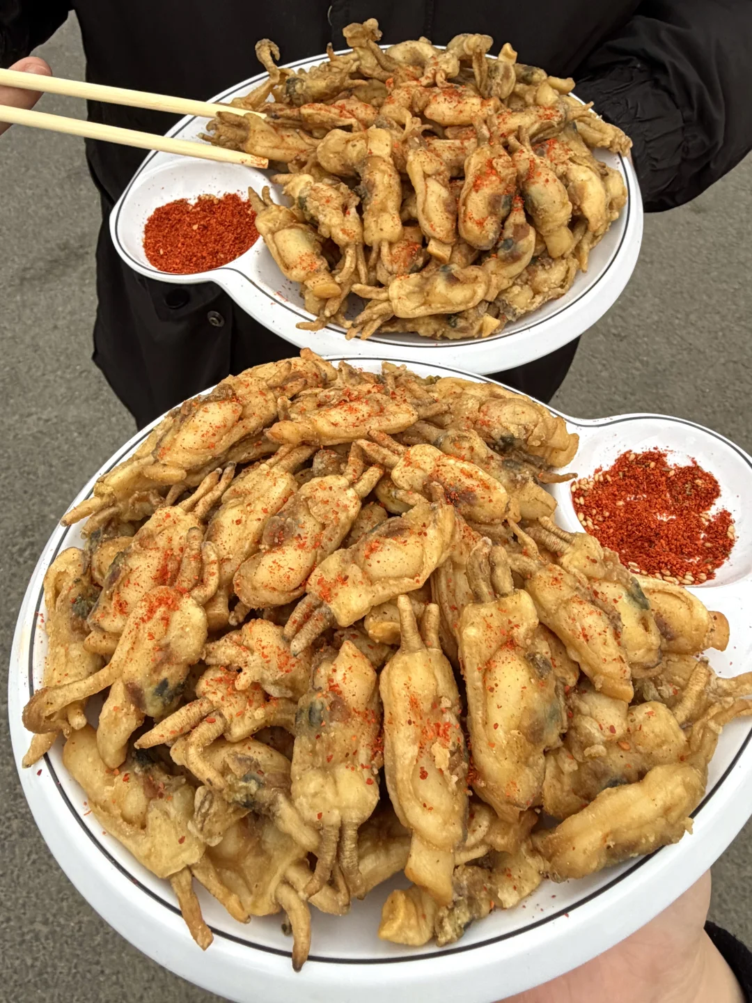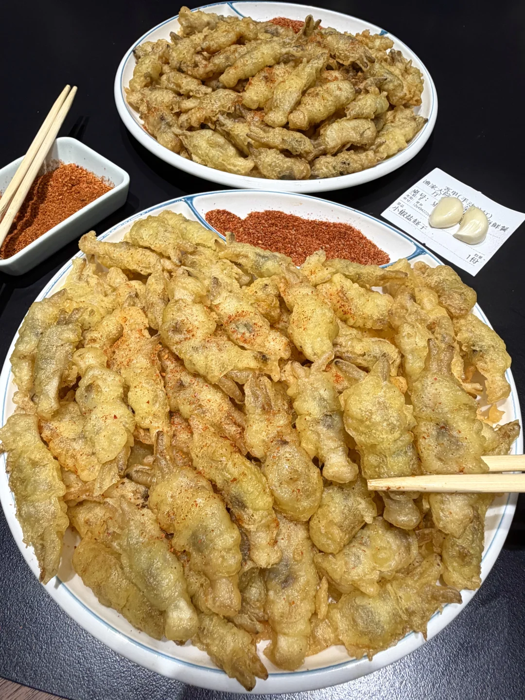 椒盐蛏子也记得吃,蛏子肥美,外面炸的香酥金黄,撒上辣椒面,真的很香