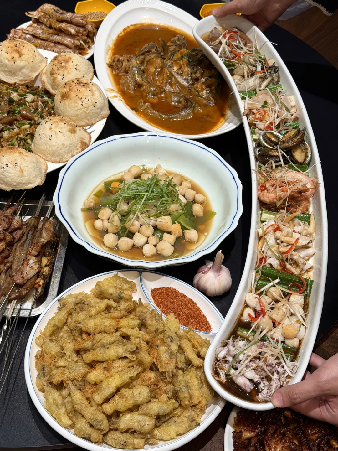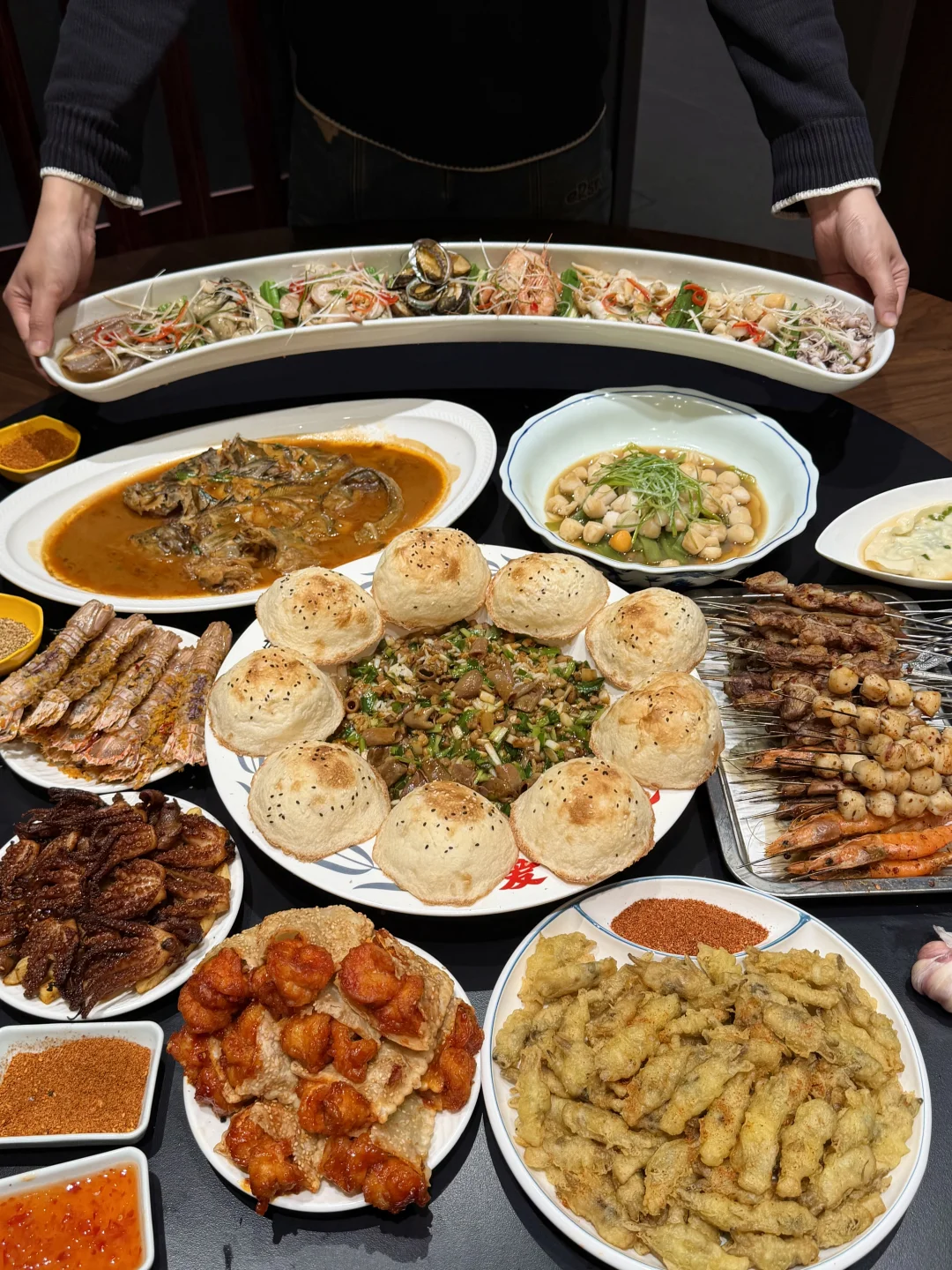 椒盐皮皮虾、海肠捞饭、烧烤都好吃,吃的出来的新鲜!