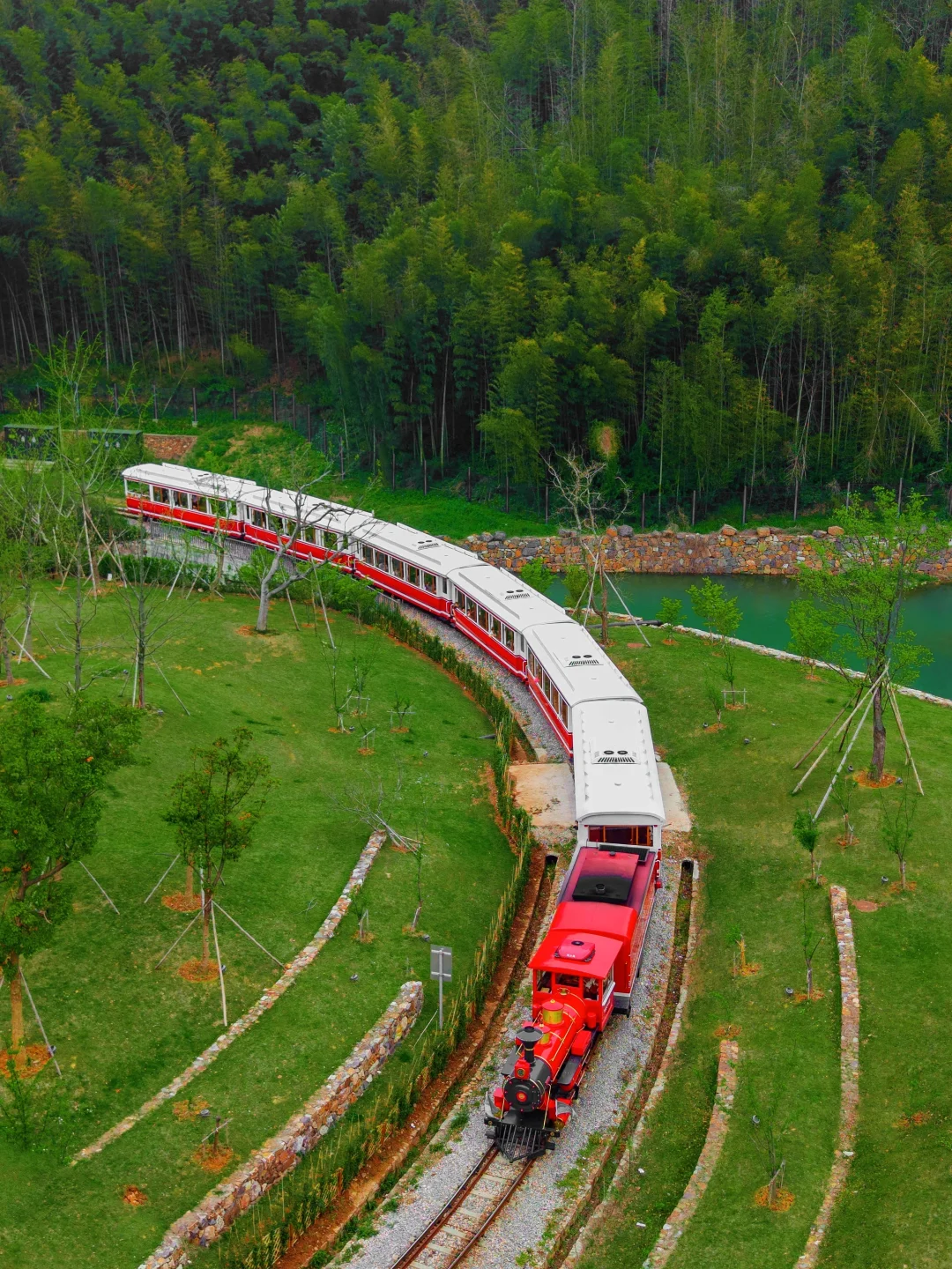 白天是青山映湖、白墙青瓦的江南小镇,乘摇橹船或搭云上的小火车穿过竹林湖泊~