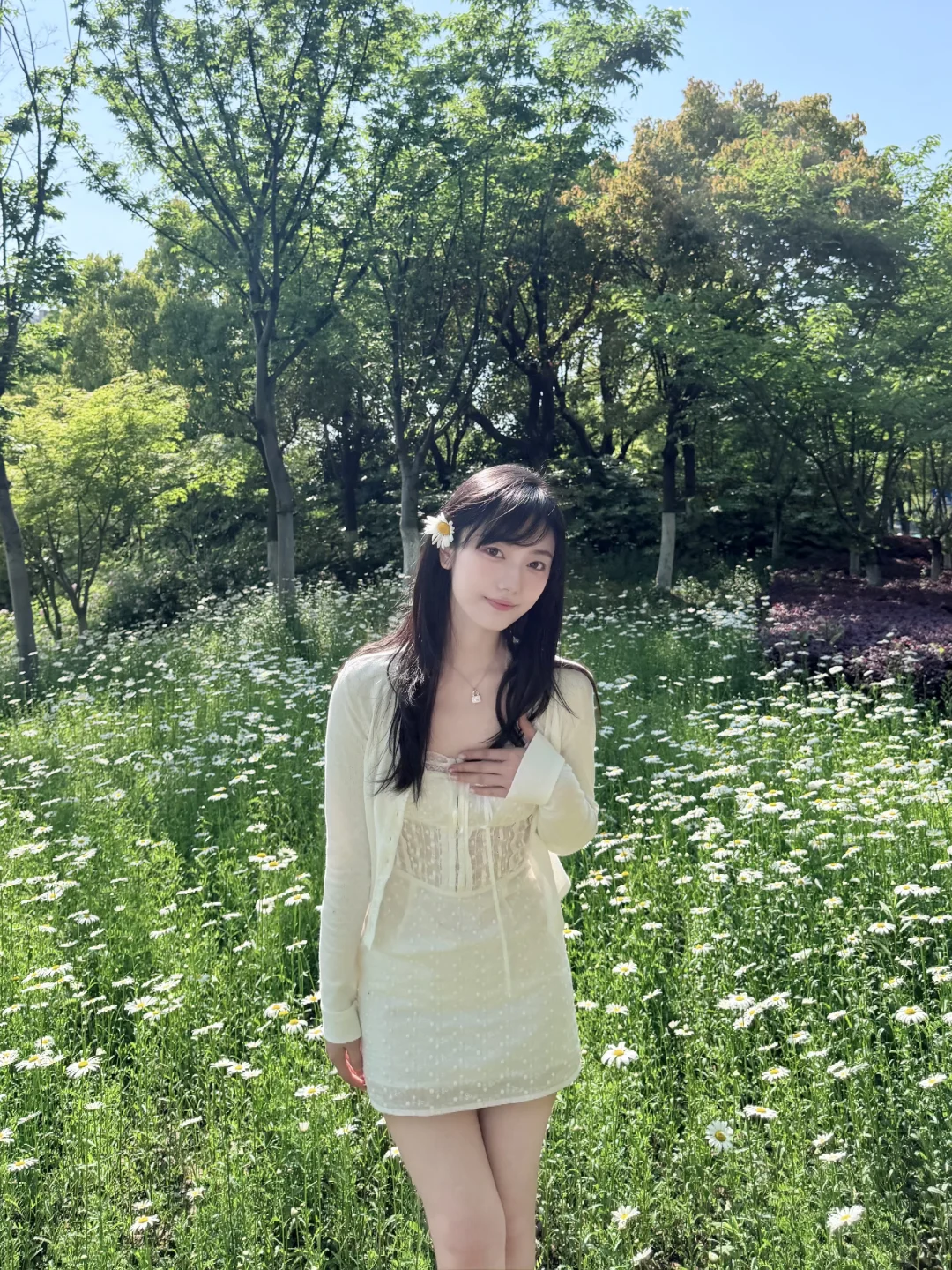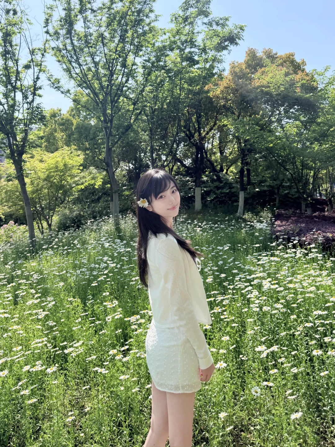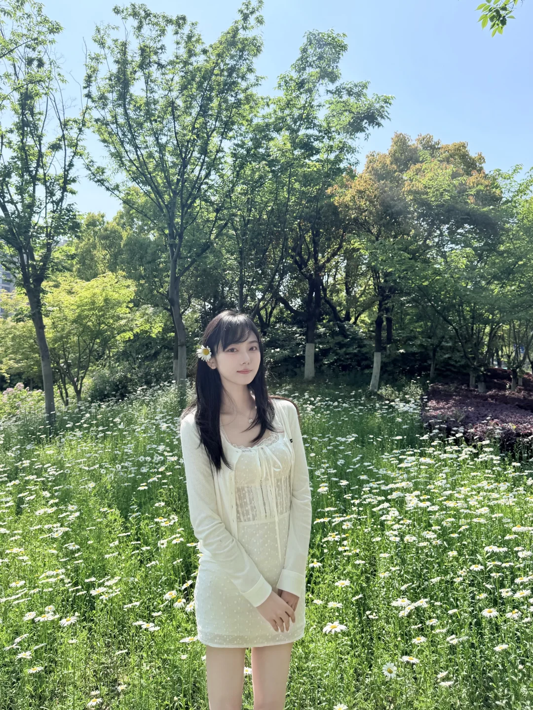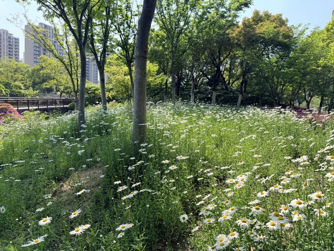 没想到小小的路边公园(好呐其实是人家有名字 叫中央公园)也有好看的白色小雏菊花海