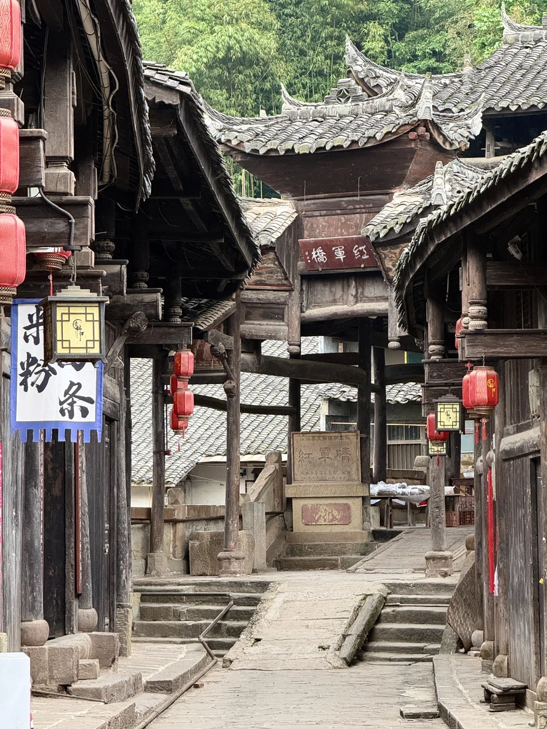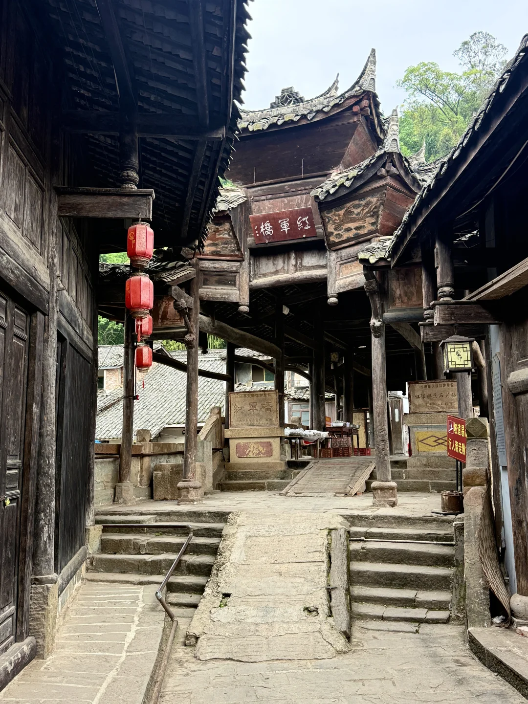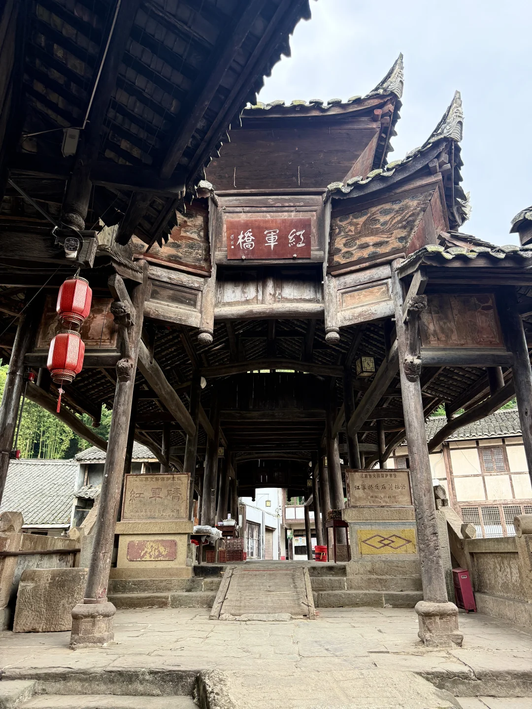 1️⃣红军桥:原名合益桥,见证过一段光辉历史,走在桥上仿佛能听见当年的马蹄声。清代重檐木桥,雕刻精美,桥上还有红军长征石刻标语,红色记忆拉满