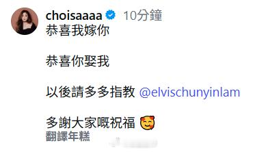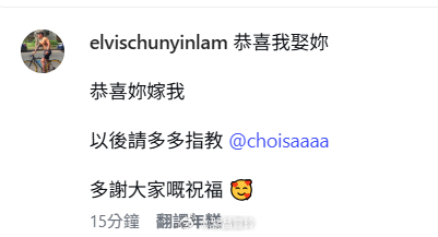 【明報即時】阿Sa與Elvis姊弟戀開花結果 宣布婚訊:以後請多多指教