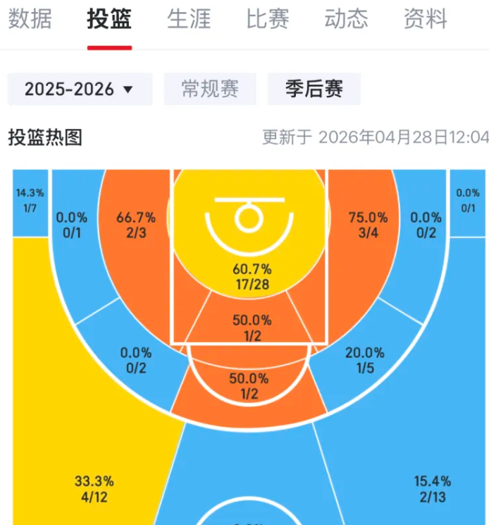 杰伦格林这投篮热图,除了三分铁,其他没毛病吧?