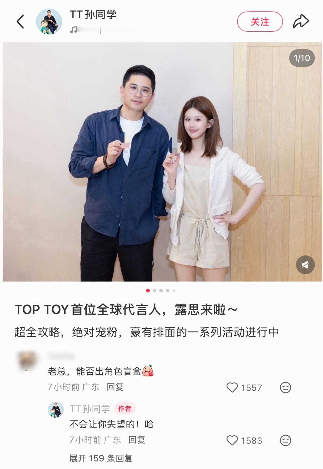 Toptoy总裁:露思代言期间不签任何代言人,没有必要,聚焦露思为品牌唯一全球代