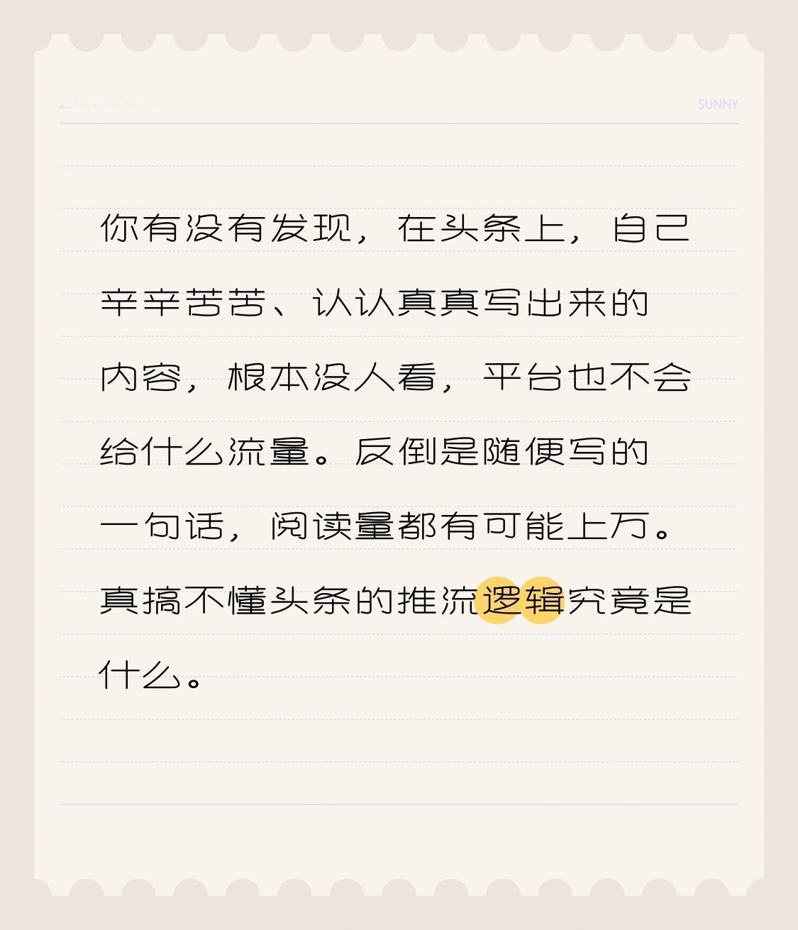 你有没有发现,自己辛辛苦苦、认认真真写出来的内容,根本没人看,平台也不会给什么流量。反倒是随便写的一句话,阅读量都有可能上万。