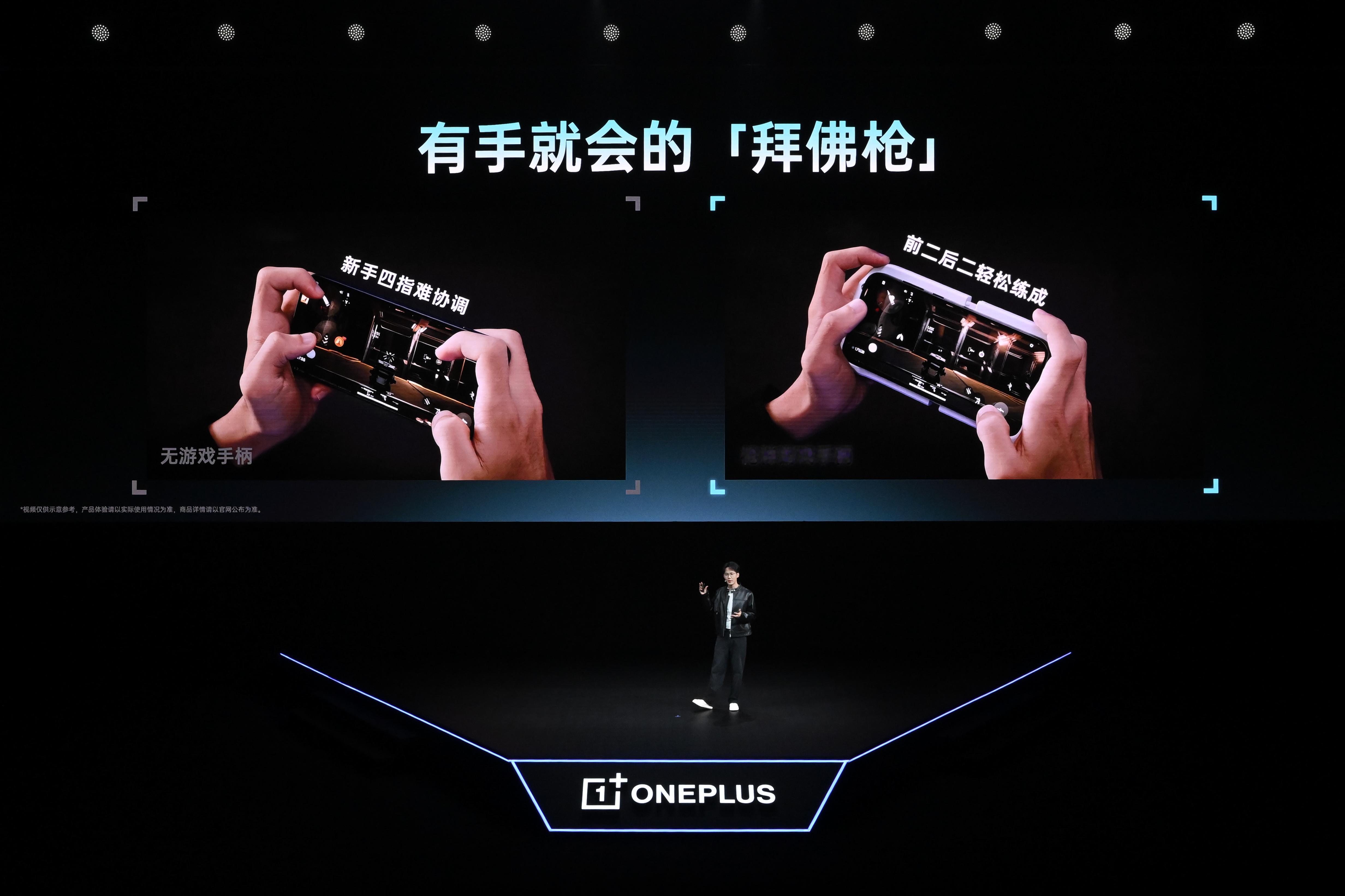 一加枪神游戏手柄,行业首创手机×掌机握持形态,手柄采用人体工学握把,首创四键与触