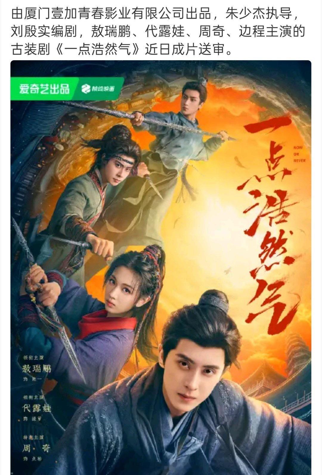 敖瑞鹏、代露娃、周奇、边程的一点浩然气 成片送审了。敖瑞鹏扛招商,江湖群像轻喜剧