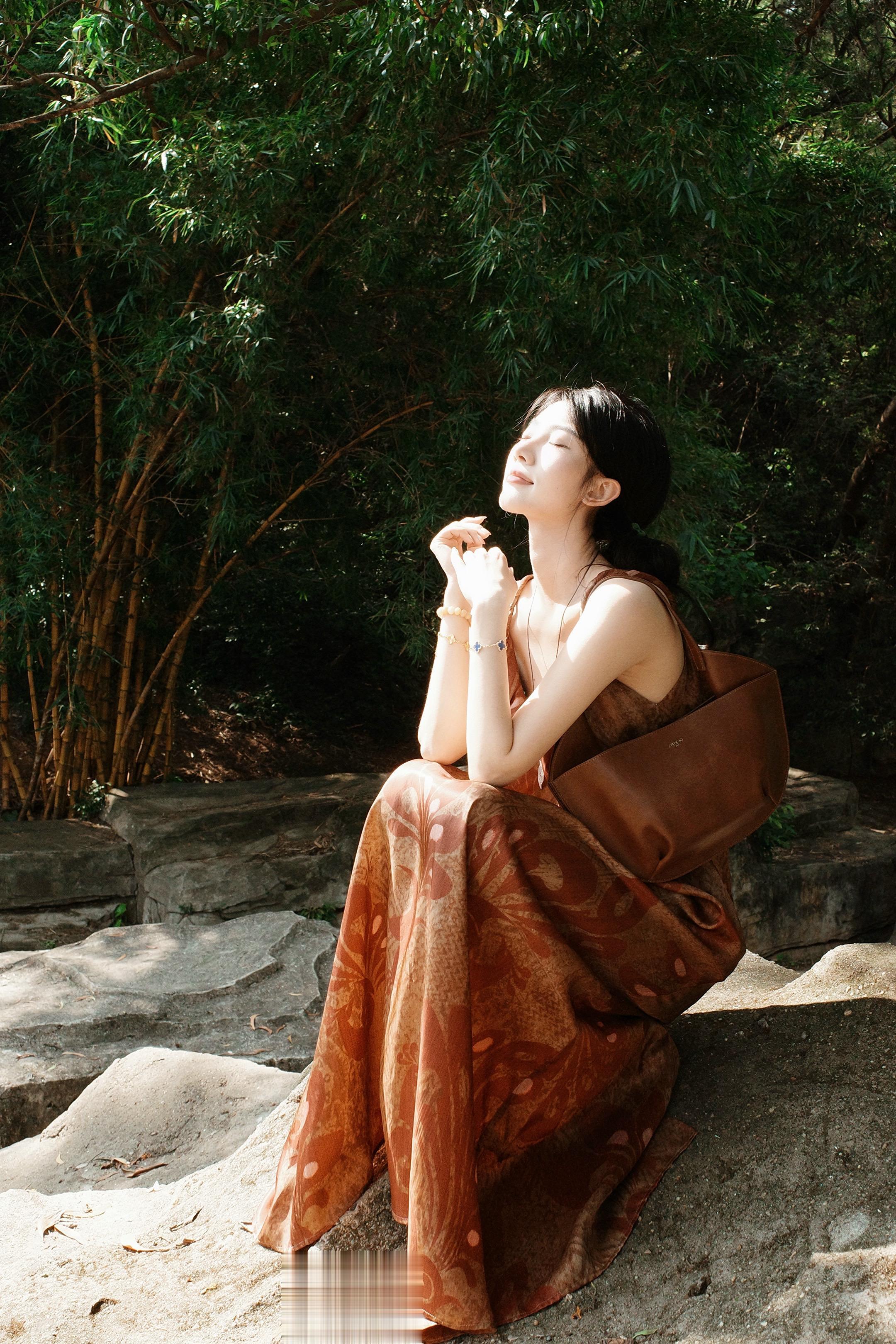 一身温柔针织,与满园春色相融,一半温婉诗意,一半松弛自在,时光也在此刻慢了下来。