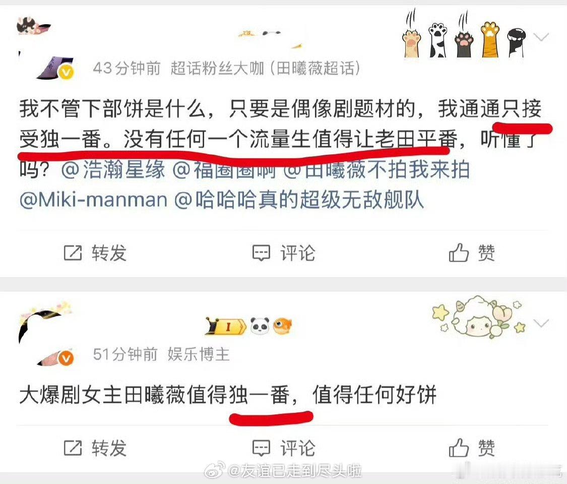传说田曦薇宋威龙要合作《潮热雨季未解之谜》,田曦薇粉丝立刻喊话手握两部集均8000的花新接剧必须单独一番,粉丝之所以这么激动,大概是自己都觉得压不了宋威龙吧