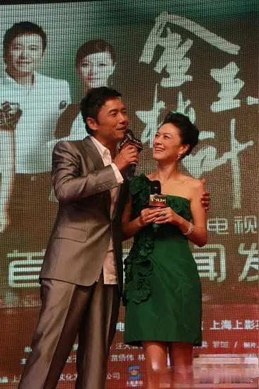 田海蓉一身绿色短裙,浑身上下散发着一种贵族气质,就是不知道身边的男士是谁?一身西装,帅气儒雅,他是演员吗?