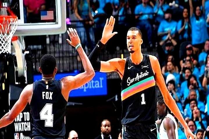 文班亚马举着手在罚球线要球,愣是接不到。整个禁区空荡荡,球就是传不进去。上一场还各种轻松投三分,这场第一节就出手1次,靠罚球拿了5分。